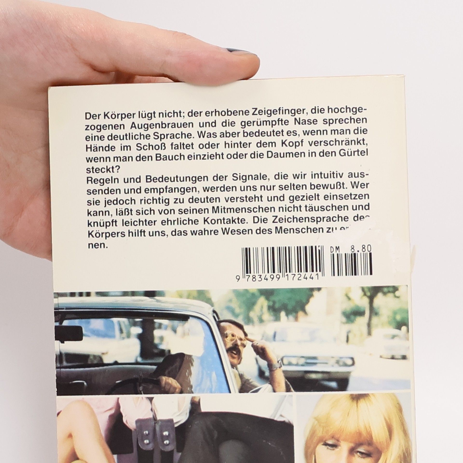 Der Körper lügt nicht; der erhobene Zeigefinger, die hochgezogenen Augenbrauen und die gerümpfte Nase sprechen eine deutliche Sprache. Was aber bedeutet es, wenn man die Hände im Schoß faltet oder hinter dem Kopf verschränkt, wenn man den Bauch einzieht oder die Daumen in den Gürtel steckt? Regeln und Bedeutungen der Signale, die wir intuitiv aussenden und empfangen, werden uns nur selten bewußt. Wer sie jedoch richtig zu deuten versteht und gezielt einsetzen kann, läßt sich von seinen Mitmenschen nicht täuschen und knüpft leichter ehrliche Kontakte.