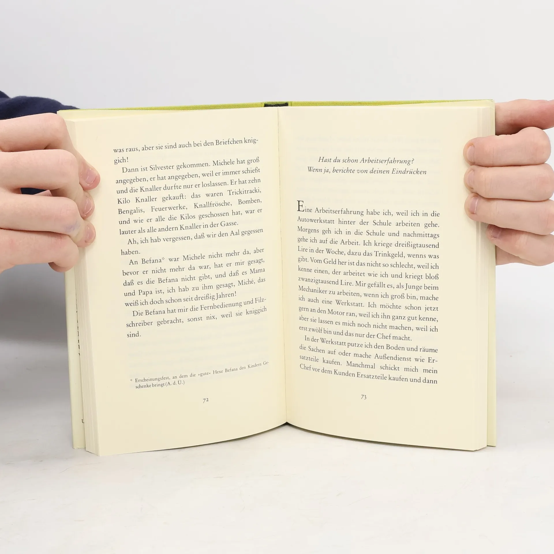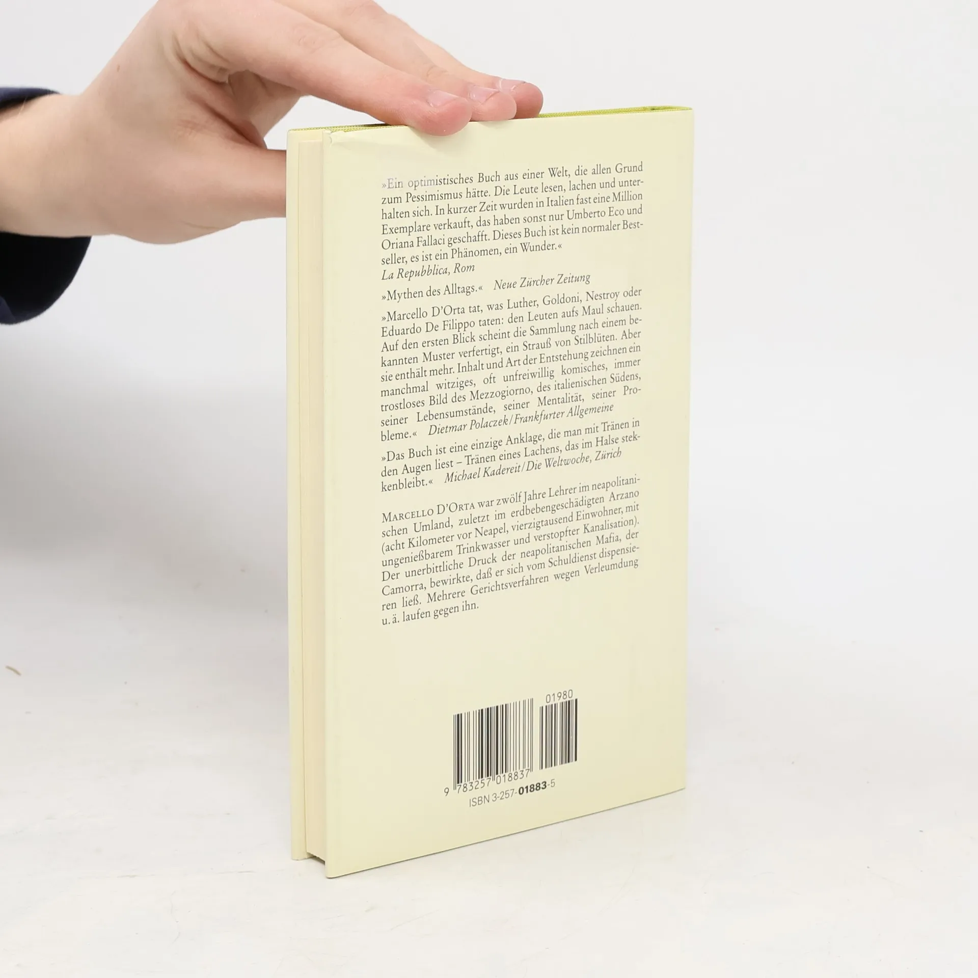 Ein neapolitanischer Lehrer veröffentlicht 60 Aufsätze seiner Schüler, eine Auswahl der 'witzigsten und erstaunlichsten'. "Ich glaube, die Lektüre lohnt sich. Sieht man genauer hin, leuchtet in dieser munteren und erbarmungslosen Alltagschronik, die einen Einblick in die Lebensbedingungen Süditaliens vermittelt, etwas Tieferes auf: Weisheit und uralte Resignation, aber auch ausgelassene, in ihrer proletarischen Unschuld geradezu mitreißende Freude."