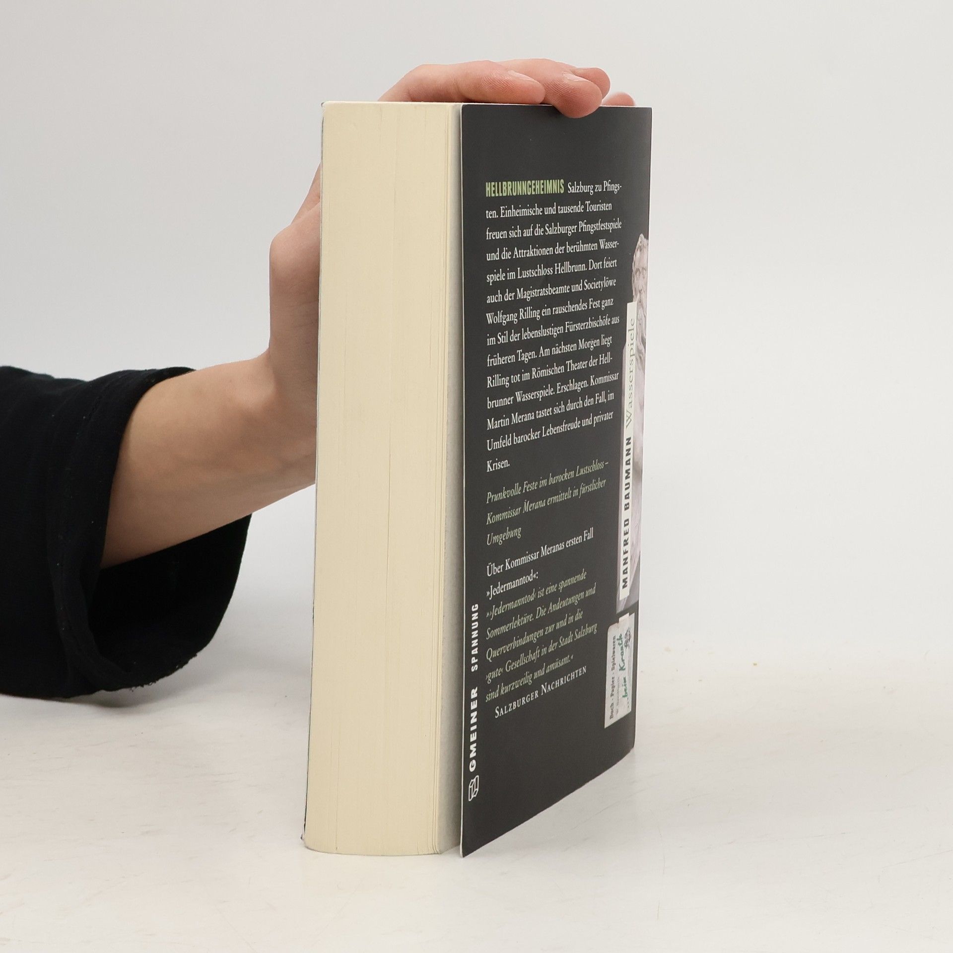 Salzburg zu Pfingsten. Einheimische und tausende Touristen freuen sich auf die Salzburger Pfingstfestspiele und die Attraktionen der berühmten Wasserspiele im Lustschloss Hellbrunn. Dort feiert auch der Magistratsbeamte und Societylöwe Wolfgang Rilling ein rauschendes Fest ganz im Stil der lebenslustigen Fürsterzbischöfe aus früheren Tagen. Am nächsten Morgen liegt Rilling tot im Römischen Theater der Hellbrunner Wasserspiele. Erschlagen. Kommissar Martin Merana tastet sich durch den Fall, im Umfeld barocker Lebensfreude und privater Krisen.