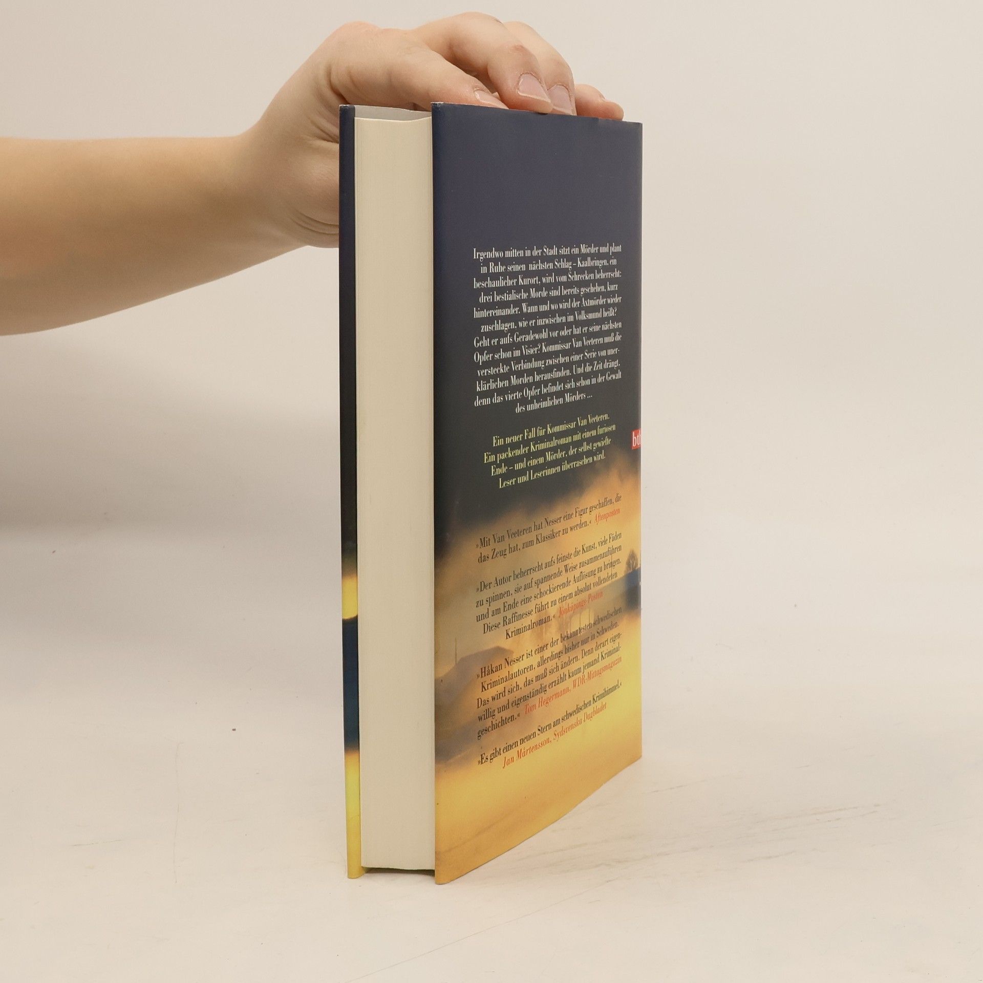 In Kaalbringen, einem ehemals beschaulichen Küstenort, regiert der Schrecken: Drei bestialische Morde sind geschehen, kurz hintereinander. Einheimische und Feriengäste reagieren mit Panik. Denn irgendwo mitten in der Stadt sitzt der Mörder und plant in Ruhe seinen nächsten Schlag. Wann und wo wird der »Axtmörder«, wie er inzwischen im Volksmund heißt, wieder zuschlagen? Das örtliche Polizeiteam ist überfordert, und so holt sich Hauptkommissar Bausen den erfahrenen Kommissar Van Veeteren zu Hilfe, der in der Nähe Urlaub macht. Die Zeit drängt, denn das vierte Opfer befindet sich schon in der Gewalt des unheimlichen Mörders.