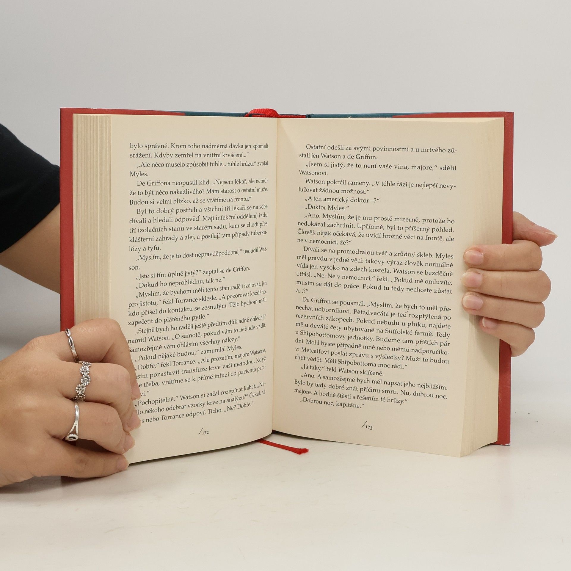V zákopech první světové války denně umírají tisíce mužů, jeden mrtvý navíc sotva koho překvapí. Až na to, že tohle tělo je plné bizarních ran, což neunikne pozornému zraku doktora Watsona, který dříve asistoval při vyšetřování samotnému Sherlocku Holmesovi. Tvář mrtvého je zmodralá, čelisti sevřené v strašlivé grimase, oči vylézají z důlků, jako by spatřily cosi nepředstavitelně hrůzného. Něco tu nehraje! A to je teprve začátek. Brzy se objeví další těla a je na Watsonovi, aby vypátral zákeřného vraha ze zákopů. Komu má důvěřovat? Kdo je nepřítel? A dokáže útočníka zastavit dřív, než znovu udeří? Uprostřed krvavé řeže, během válečného běsnění, jež trhá svět na kusy, musí Watson vystoupit ze stínu svého učitele a sám se vyřešit tajemství, k němuž ho dovedou záhadná úmrtí. První kniha ze série s doktorem Watsonem.