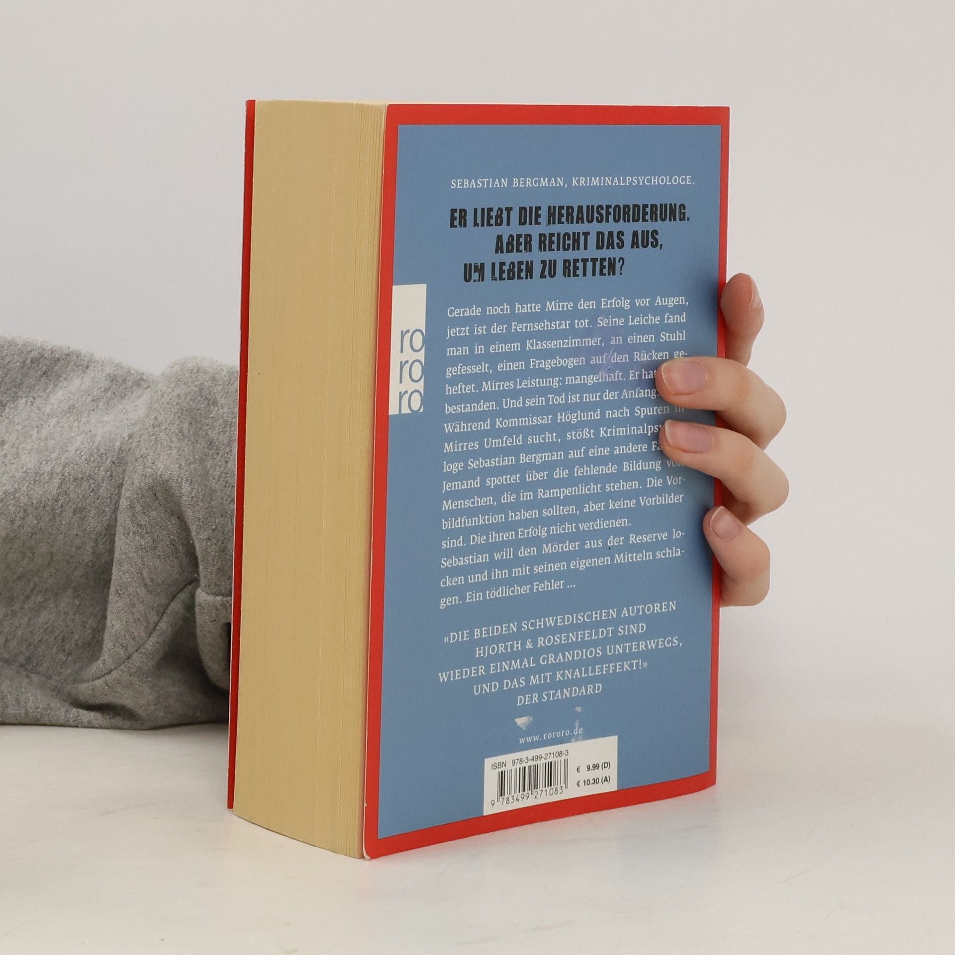 Sebastian Bergman. Kriminalpsychologe.Er ist hochintelligent. Er liebt die Herausforderung.Aber reicht das aus, um Leben zu retten?Gerade noch hatte Mirre den Erfolg vor Augen, jetzt ist der Fernsehstar tot. Hingerichtet, mit einem Bolzenschuss in den Kopf. Seine Leiche findet man in einem Klassenzimmer, an einen Stuhl gefesselt, einen Fragebogen auf den Rücken geheftet. Mirres Leistung: mangelhaft. Er hat nicht bestanden. Und sein Tod ist nur der Anfang. Während Kommissar Höglund von der Reichsmordkommission nach Spuren in Mirres Umfeld sucht, stößt Kriminalpsychologe Sebastian Bergman auf eine andere Fährte. Jemand spottet über die fehlende Bildung von Menschen, die im Rampenlicht stehen. Die Vorbildfunktion haben sollten, aber keine Vorbilder sind. Die ihren Erfolg nicht verdienen. Sebastian will den Mörder aus der Reserve locken und ihn mit seinen eigenen Mitteln schlagen. Ein tödlicher Fehler …