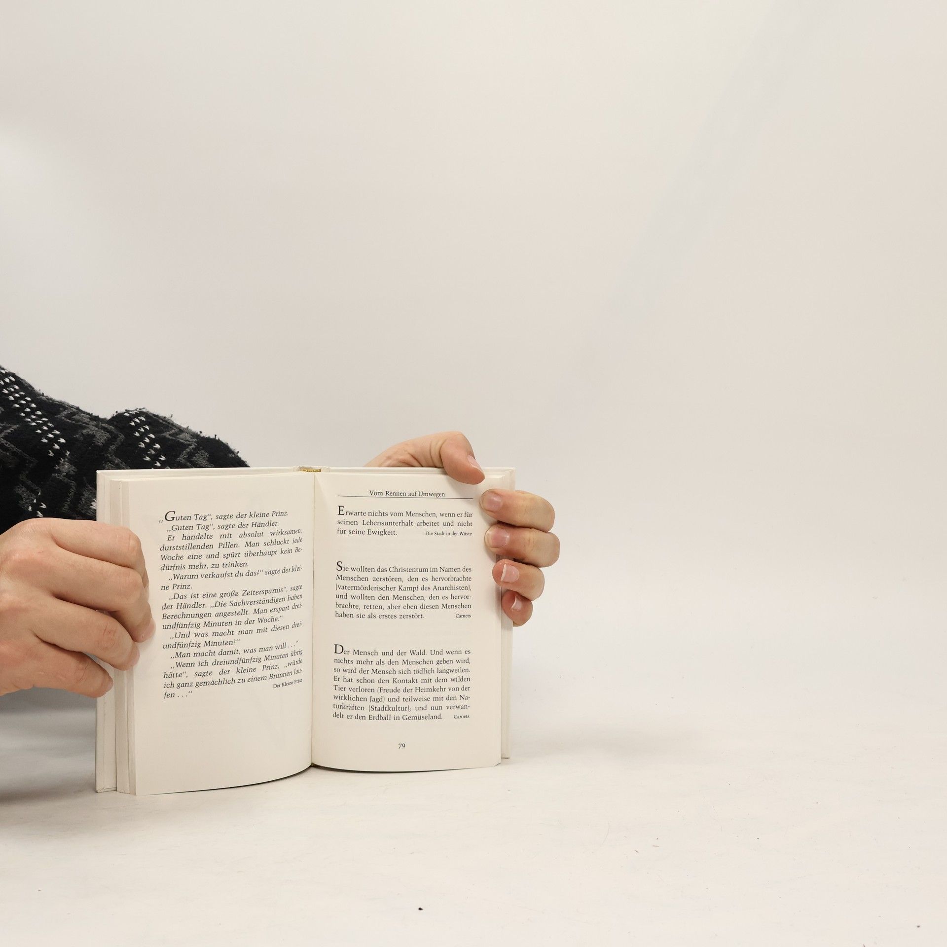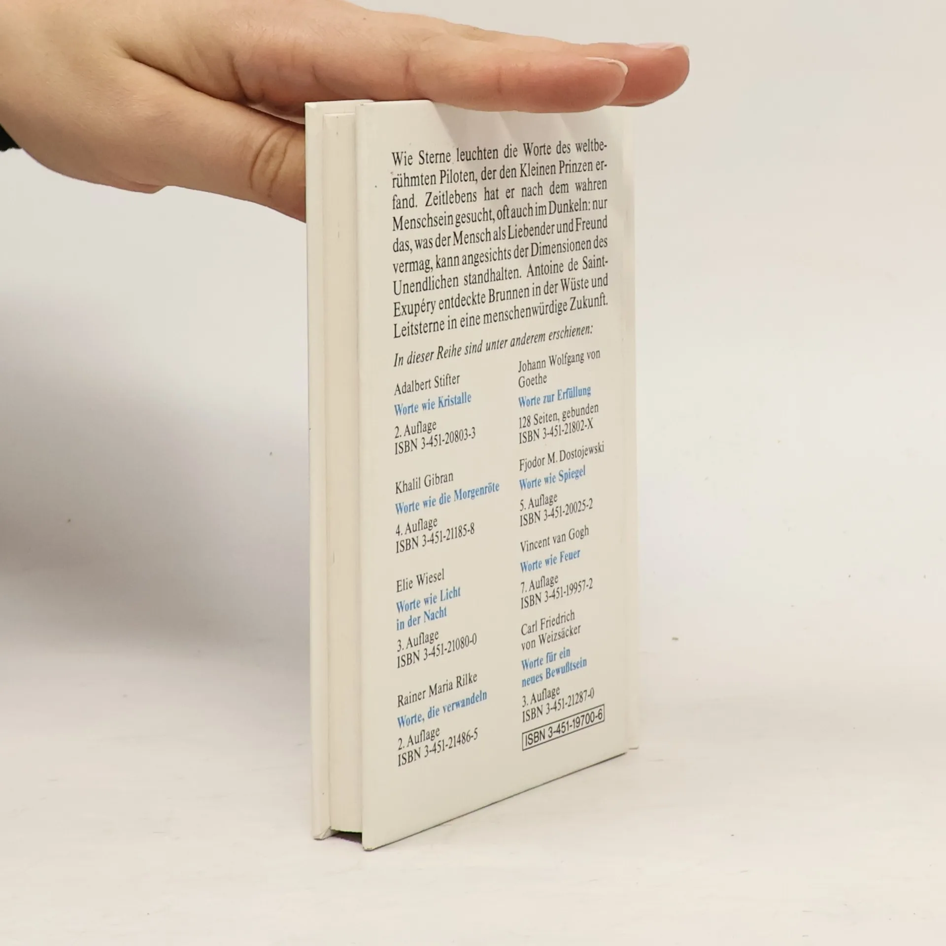 Wie Sterne leuchten die Worte des Weltberühmten Piloten, der den kleinen Prinzen erfand. Zeitlebens hat er nach dem wahren Menschsein gesucht, oft auch im Dunkeln: nur das, was der Mensch als Liebender und Freund vermag, kann angesichts der Dimensionen des Unendlichen standhalten. Antoine de Saint-Exupéry entdeckte Brunnen in der Wüste und Leitsterne in eine menschenwürdige Zukunft.