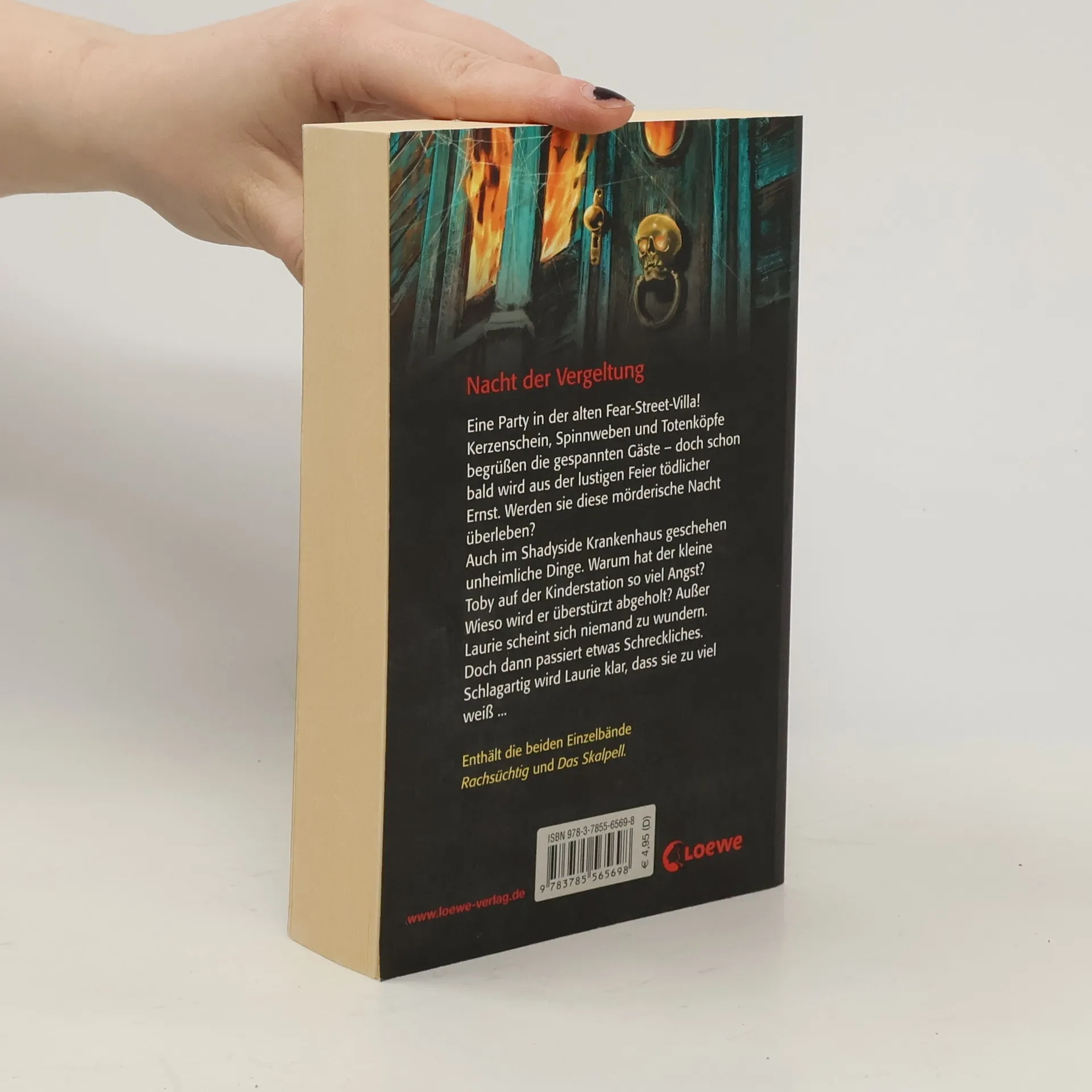 Eine Party in der alten Fear Street Villa! Kerzenschein, Spinnenweben und Totenköpfe begrüßen die gespannten Gäste – doch schon bald wird aus der lustigen Feier tödlicher Ernst. Werden sie diese mörderische Nacht überleben? Auch im Shadyside Krankenhaus geschehen unheimliche Dinge. Warum hat der kleine Toby auf der Kinderstation so viel Angst? Wieso wird er überstürzt abgeholt? Außer Laurie scheint sich niemand zu wundern. Doch dann passiert etwas Schreckliches. Schlagartig wird Laurie klar, dass sie zu viel weiß. Enthält die beiden Einzelbände „Rachsüchtig“ und „Das Skalpell“.