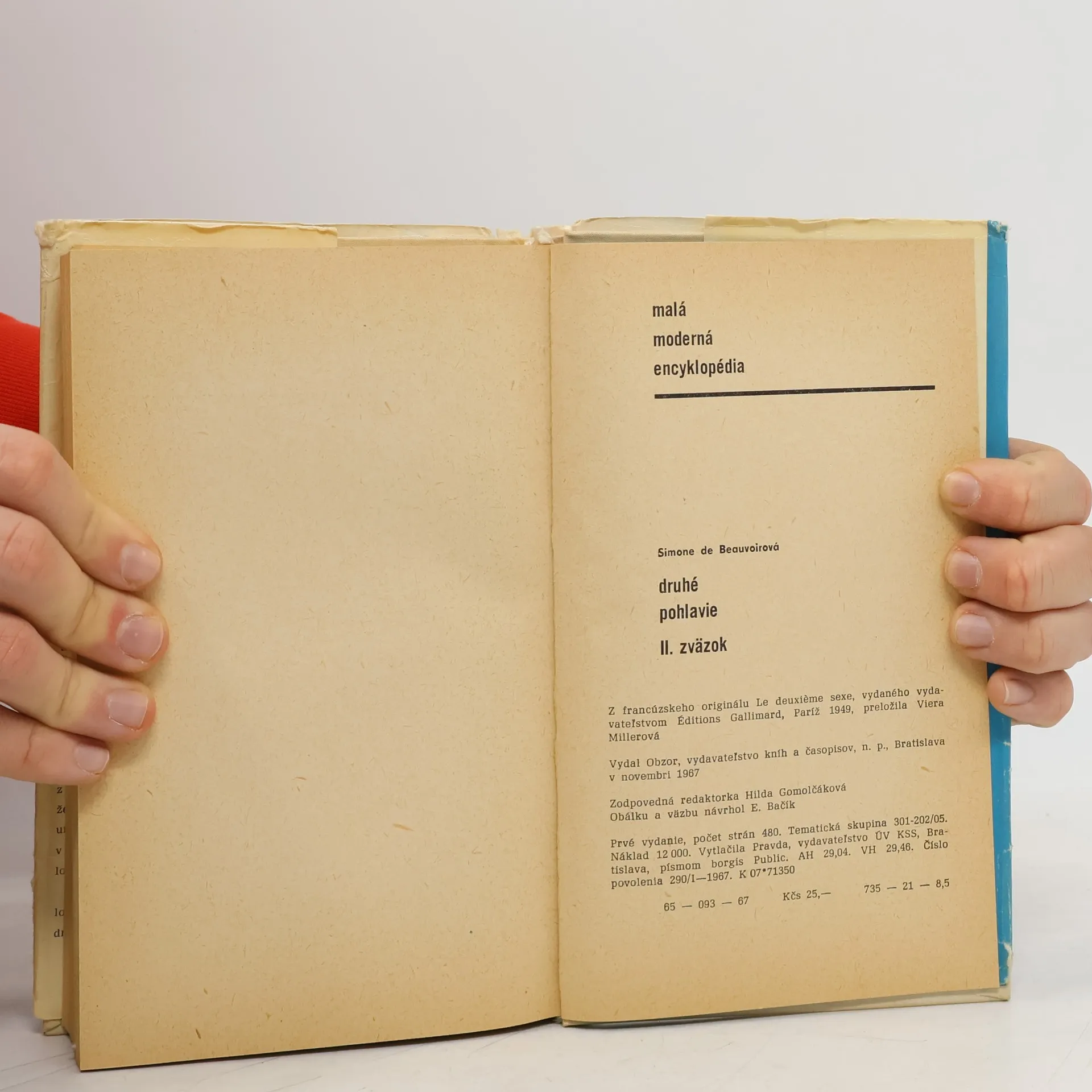 Ženou sa nik nerodí: stáva sa ňou. Nijaký biologický, psychický, ekonomický osud neurčuje podobu ľudskej samičky v lone spoločnosti – je to súhrn civilizácie, čo vytvára tento prechodný produkt medzi samcom a klieštencom, označovaný ako ženský. Jedine prostredníctvom druhého sa môže jedinec vytvoriť ako ten druhý. Mladosť dievčaťa prejde viacmenej v očakávaní. Čaká Muža. Isteže aj dospievajúci chlapec sníva o žene, túži po nej, no v jeho živote bude žena vždy iba jedným prvkom – neurčuje jeho osud. Zatiaľ dievča od samého detstva, či už si želá realizovať sa ako žena, alebo prekročiť hranice svojho ženstva, očakávalo od muža naplnenie aj únik: pre dievčinu má muž oslnivú tvár, je vysloboditeľom; je bohatý a mocný a vlastní kľúče k jej šťastiu, je princom z rozprávky. Dievčina vopred cíti, že pri jeho nežnostiach akoby ju unášal obrovský prúd života ako v čase, keď spočívala v matkinom lone. Manželstvo je údelom, ktorý spoločnosť tradične ponúka žene. Aj dnes sú ženy väčšinou vydaté, alebo aspoň boli, pripravujú sa na vydaj alebo trpia tým, že sa neuskutočnil. Ekonomický vývoj postavenia ženy mení inštitúciu manželstva prevratným spôsobom – stáva sa zväzkom, ktorý dobrovoľne uzatvárajú dvaja jedinci. Žena už nie je obmedzená na funkciu roditeľky: táto funkcia stratila z veľkej časti povahu samozrejmej služby a prejavuje sa skôr ako povinnosť, ktorú žena dobrovoľne berie na seba. (Úryvky z textu.) Prvé vydanie.