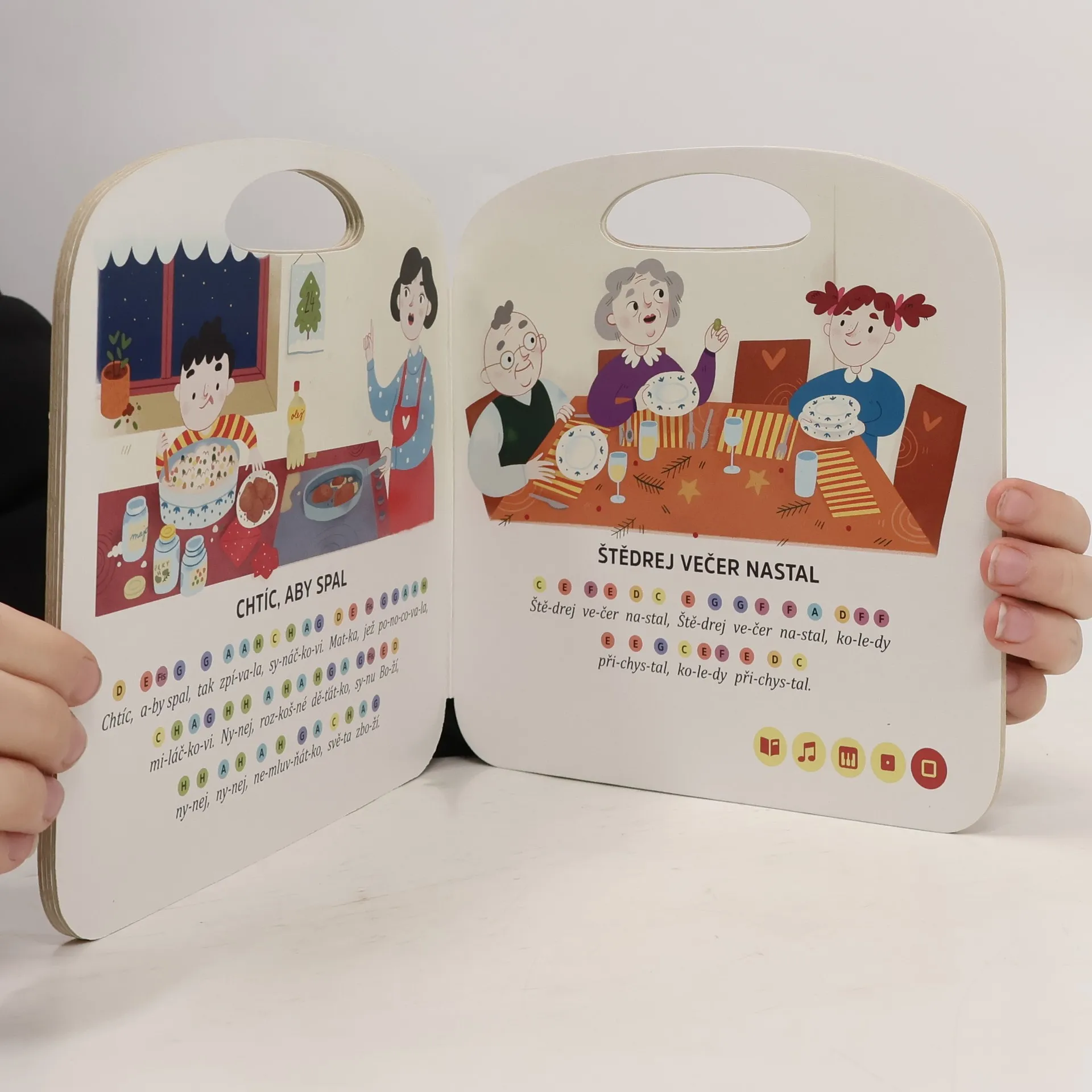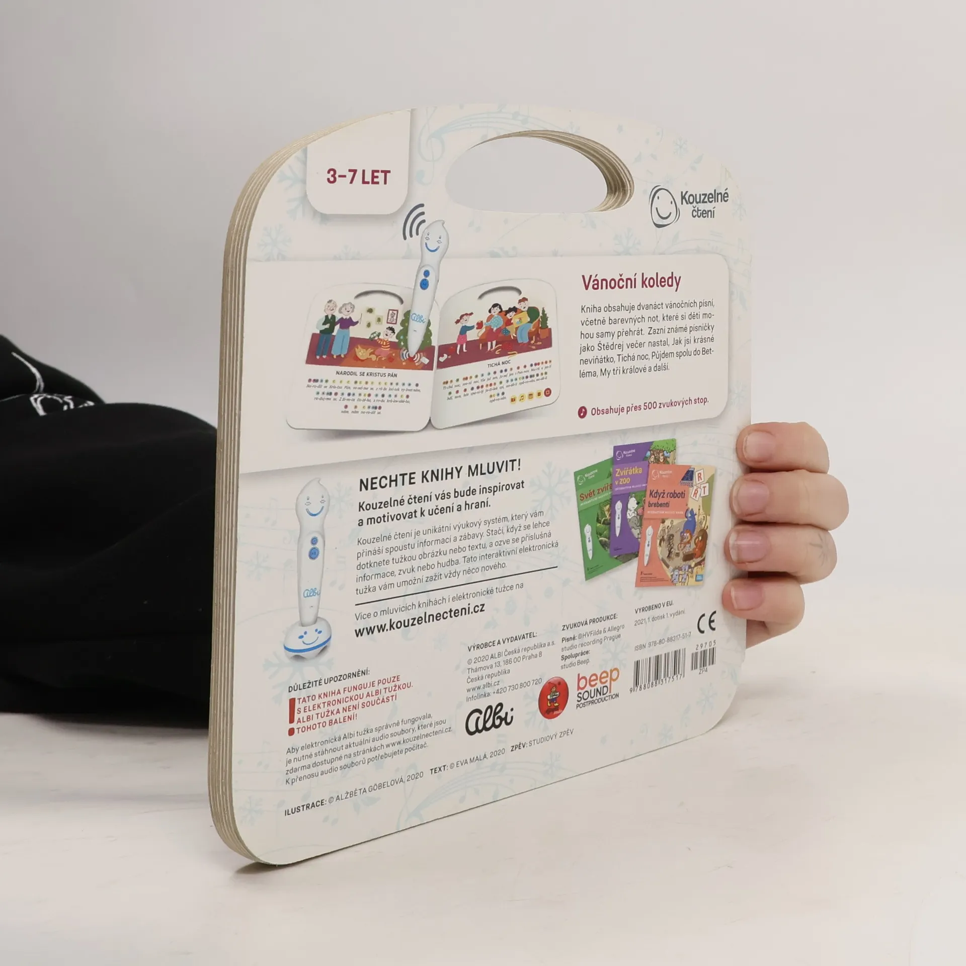 12 českých vánočních koled na doprovází celostránkové ilustrace, texty písní a barevně označené tóny melodie písní. Při použití elektronické tužky Albi kniha ožívá a děti si mohou zahrát vánoční melodie