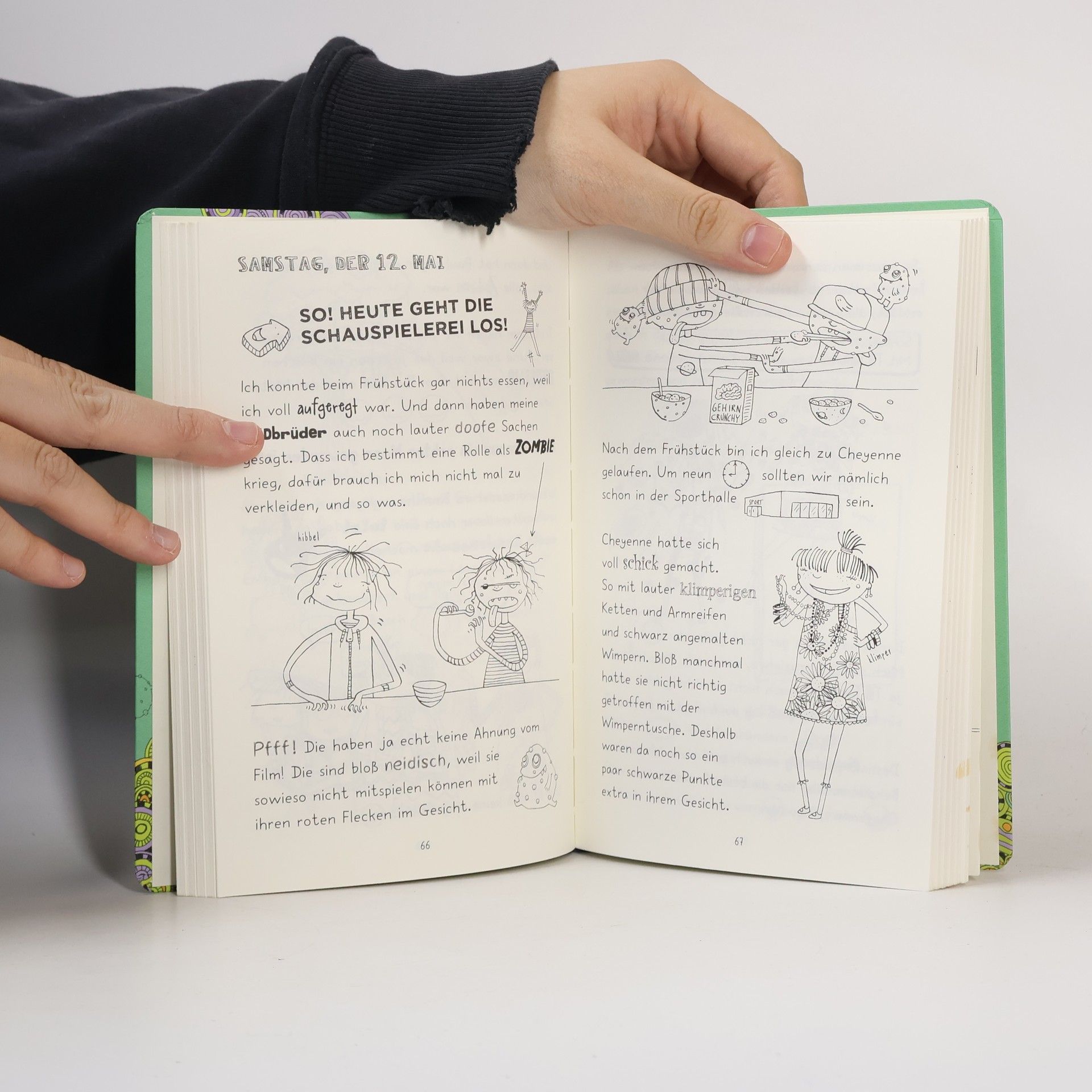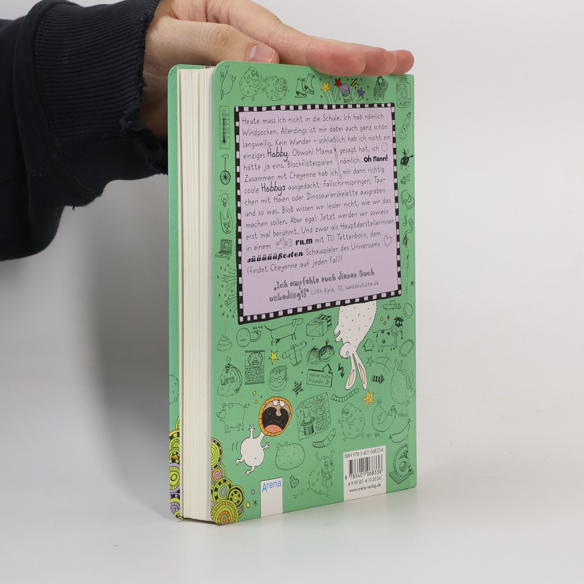 Heute muss ich nicht in die Schule. Ich hab nämlich Windpocken. Allerdings ist mir dabei auch ganz schön langweilig. Kein Wunder - schließlich hab ich nicht ein einziges Hobby. Zusammen mit Cheyenne hab ich mir dann erst mal richtig coole Hobbys ausgedacht: Fallschirmspringen und Tauchen mit Haien und Dinosaurierskelette ausgraben und so was. Bloß wissen wir leider nicht, wie wir das machen sollen. Aber egal: Jetzt werden wir sowieso erstmal berühmt. Und zwar als Hauptdarstellerinnen in einem Film mit Till Tettenborn, dem süüüüüßesten Schauspieler des Universums (findet Cheyenne auf jeden Fall)!