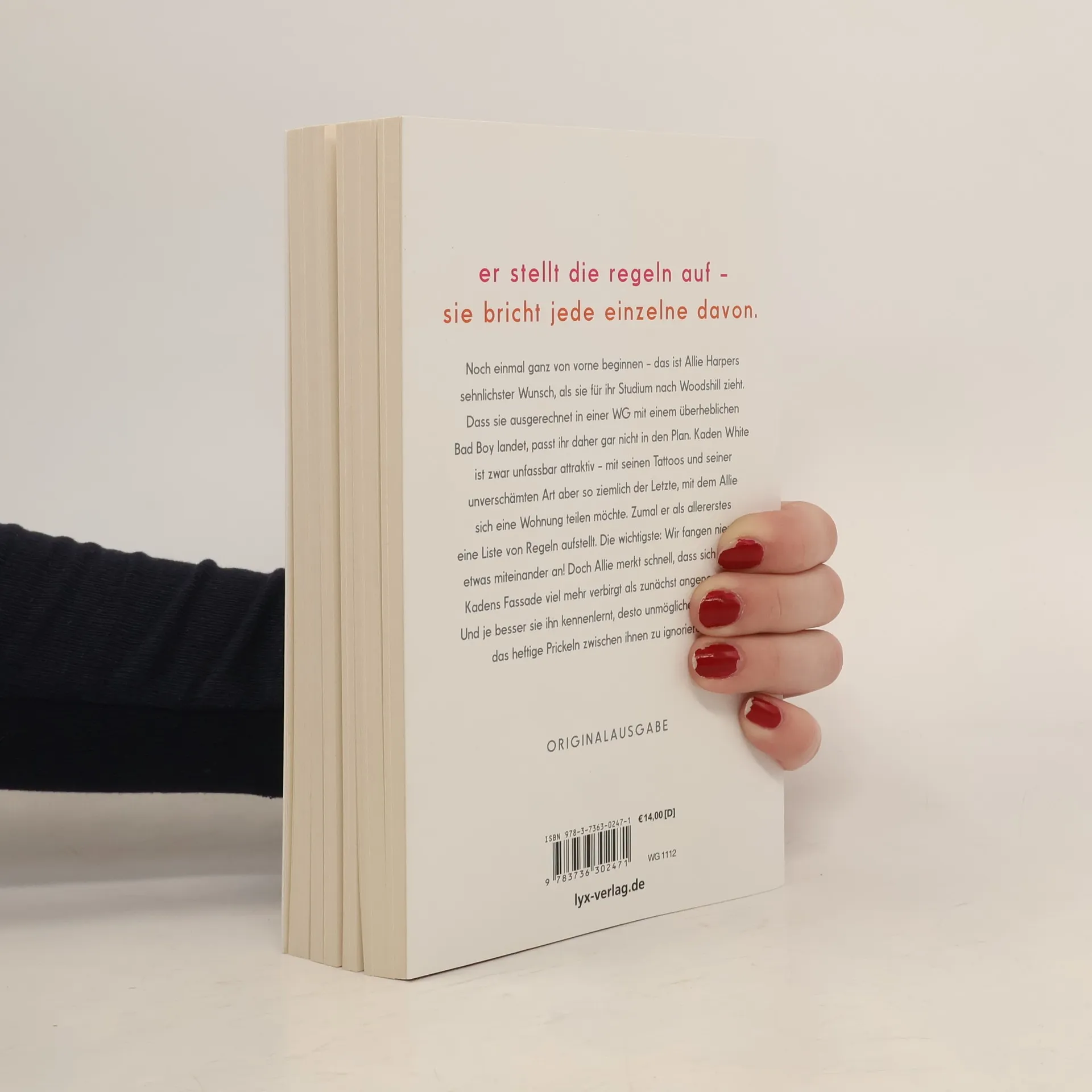 Er stellt die Regeln auf - sie bricht jede einzelne davon. Noch einmal ganz von vorne beginnen - das ist Allie Harpers sehnlichster Wunsch, als sie für ihr Studium nach Woodshill zieht. Dass sie ausgerechnet in einer WG mit einem überheblichen Bad Boy landet, passt ihr daher gar nicht in den Plan. Kaden White ist zwar unfassbar attraktiv - mit seinen Tattoos und seiner unverschämten Art aber so ziemlich der Letzte, mit dem Allie sich eine Wohnung teilen möchte. Zumal er als allererstes eine Liste von Regeln aufstellt. Die wichtigste: Wir fangen niemals etwas miteinander an! Doch Allie merkt schnell, dass sich hinter Kadens Fassade viel mehr verbirgt als zunächst angenommen. Und je besser sie ihn kennenlernt, desto unmöglicher wird es ihr, das heftige Prickeln zwischen ihnen zu ignorieren ... „Lache, weine und verliebe dich. Mona Kasten hat ein Buch geschrieben, das man nicht aus der Hand legen kann!“ ANNA TODD über „Begin Again“ Der Auftaktband der „Again“-Reihe von Platz-1-SPIEGEL-Bestseller-Autorin Mona Kasten