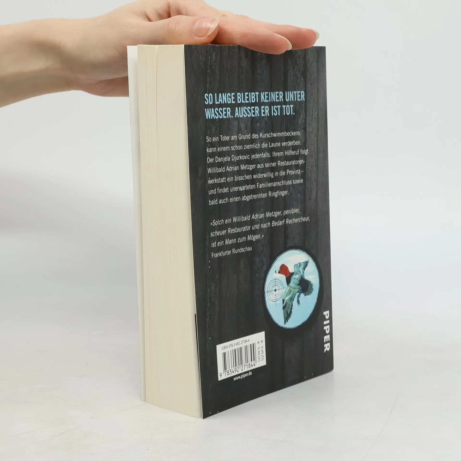So ein Toter am Grund des Kurschwimmbeckens kann einem schon ziemlich die Laune verderben. Der Danjela Djurkovic jedenfalls. Ihrem Hilferuf folgt Willibald Adrian Metzger aus seiner Restauratorenwerkstatt ein bisschen widerwillig in die Provinz – und findet unerwarteten Familienanschluss sowie bald auch einen abgetrennten Ringfinger.