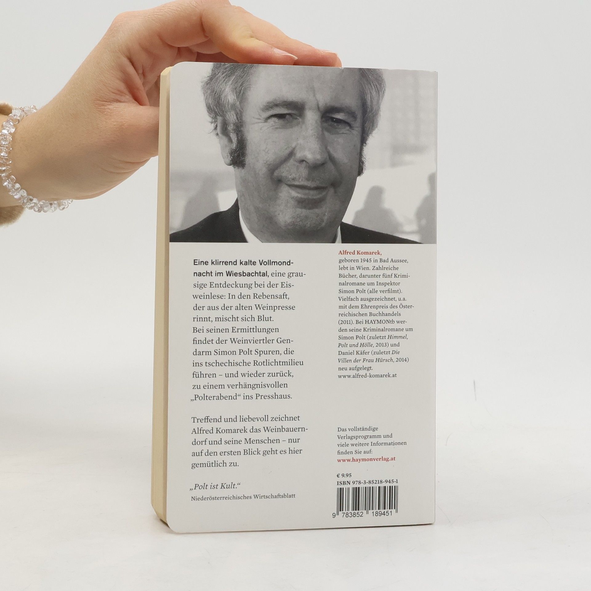 Eine klirrend kalte Vollmondnacht im Wiesbachtal. Einige Männer haben sich gegen vier Uhr früh zusammengefunden, um Trauben für Eiswein zu lesen. Sie machen eine grausige Entdeckung: In den Rebensaft, der aus der alten Weinpresse rinnt, mischt sich Blut. Beim Opfer handelt es sich um einen leichtlebigen jungen Mann, der sich mit Gelegenheitsarbeiten durchbrachte. Was ist im einsam gelegenen Preßhaus des Weinbauern Karl Fürnkranz spätnachts geschehen? Als Polt im Umfeld des Opfers ermittelt, muß er sich eingestehen, daß Karl Fürnkranz, den er sehr schätzt, zu den Verdächtigen zählt. Er verfolgt aber auch Spuren, die ins Rotlichtmilieu jenseits der tschechischen Grenze führen, und hat dort eine verwirrende und bedrückende Begegnung. Als er dann von einem alptraumhaften Polterabend im Preßhaus erfährt, sieht sich der Gendarm in fast auswegloser Lage … Auch im vierten Polt-Roman hält sich Erfolgsautor Alfred Komarek konsequent an sein Konzept, mittels einer Kriminalgeschichte liebevoll und gleichzeitig schonungslos offen das Porträt eines Weinbauerndorfes und seiner Menschen zu zeichnen. Wieder fügt er dem Bild eines bedrohten und gar nicht so idyllischen Lebensraumes neue Facetten hinzu. Eines der Themen ist diesmal die Situation der Dörfer an der jetzt „offenen“ Grenze zu Tschechien und die daraus resultierenden Probleme