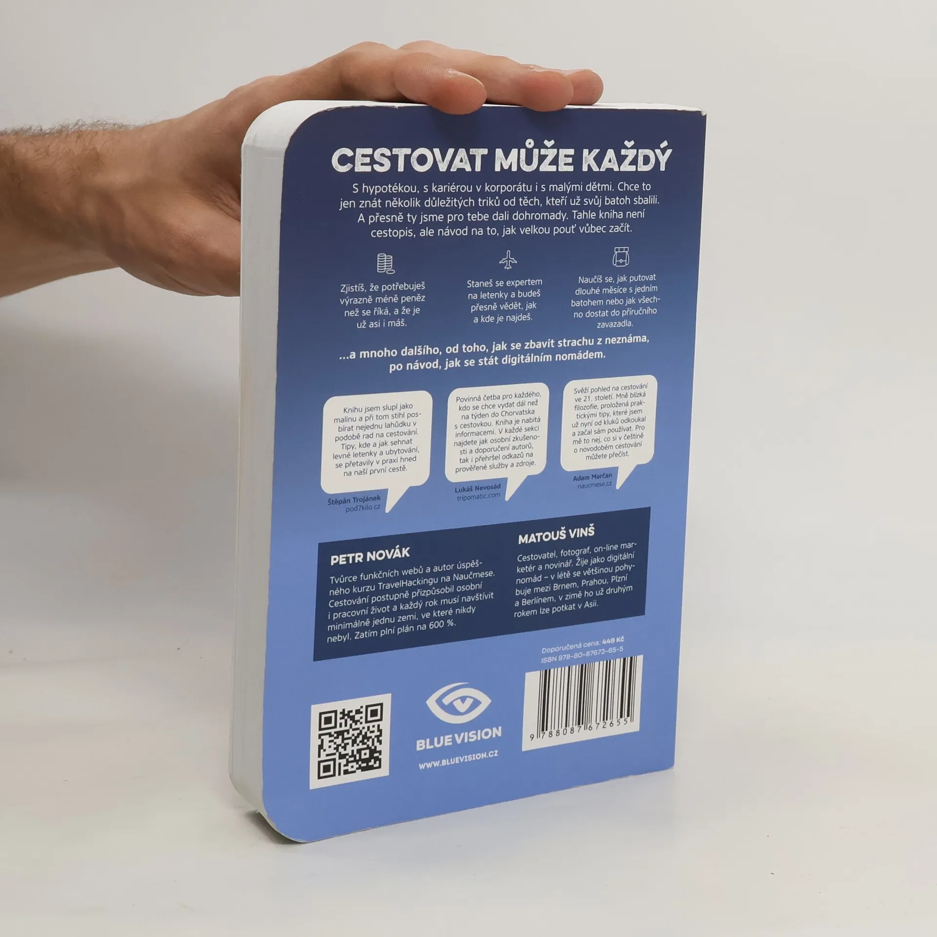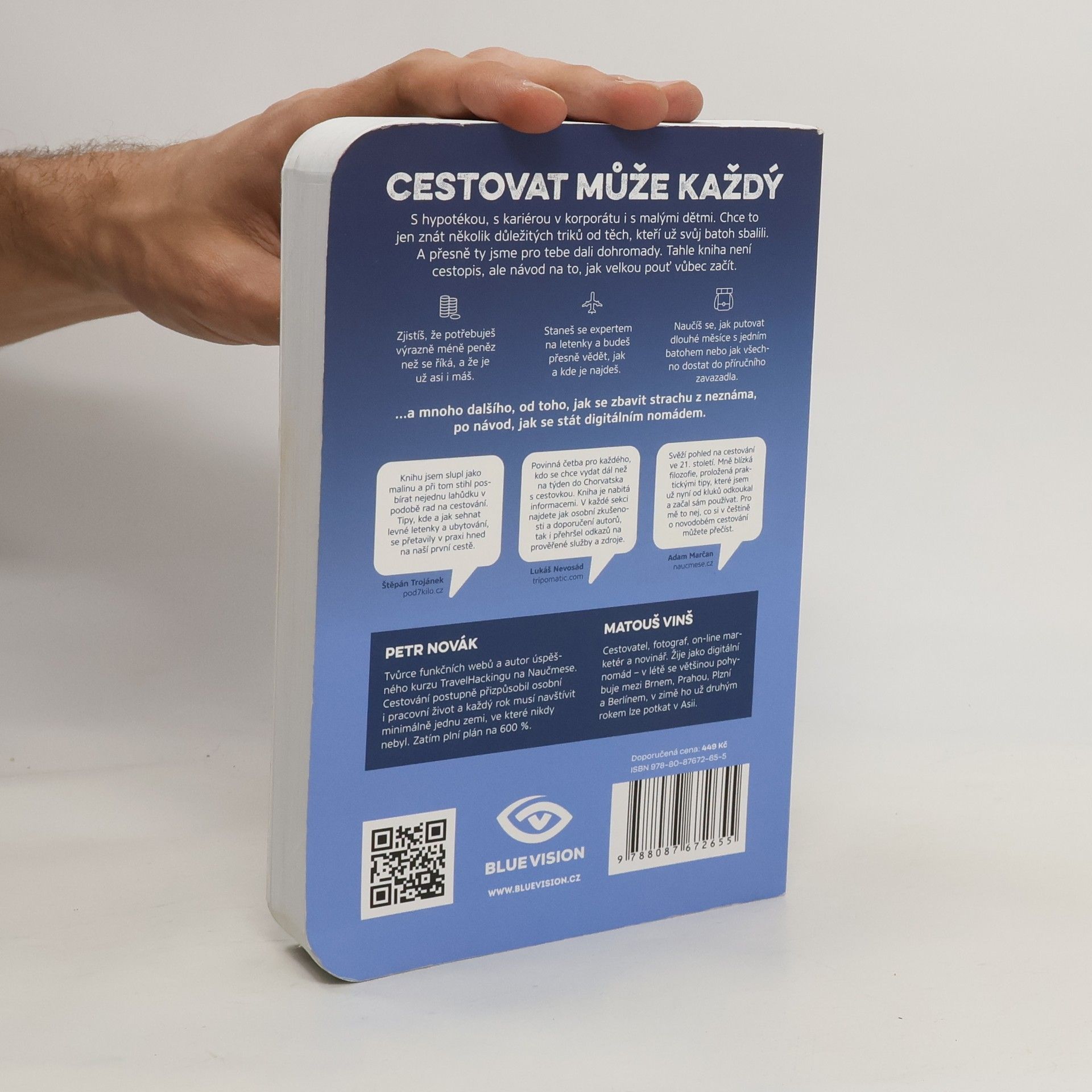 Travel bible: praktické rady za milion, jak procestovat svět za pusu. Aktualizované vydání pro rok 2019. Autoři v této souvislosti na základě vlastních zkušeností radí cestovatelům, jak se na cestu připravit a co vše zařídit před odjezdem, kde zabukovat letenky, co si vzít s sebou, jak hospodařit s financemi a kolik peněž bude zapotřebí, jak na cestě ušetřit, jakým způsobem v dané zemi cestovat, jak si na cestě přivydělat či získat nocleh za dobrovolnou práci, kde se ubytovat, jak komunikovat v cizině s úřady, jak psychicky zvládat různé nastalé situace. Pár stránek také věnují fenoménu digitálního nomádství či tomu a nezapomínají také na své zkušenosti a modelové příklady levných cest.