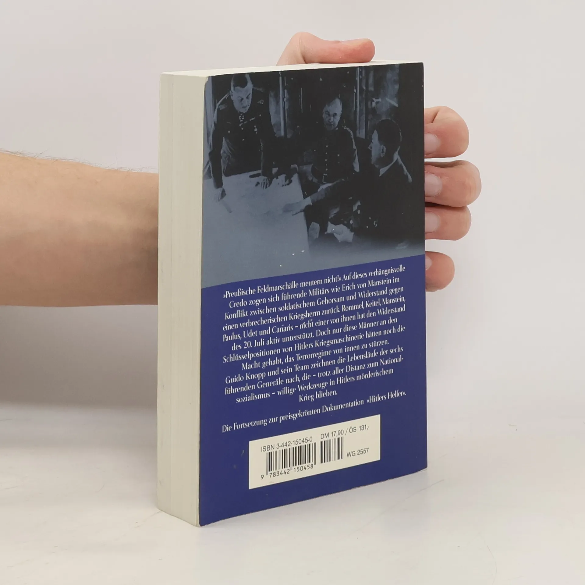 Die Fortsetzung zur Reihe um „Hitlers Helfer“ vom erfolgreichsten deutschen Sachbuchautor des Jahres 1998. „Preußische Feldmarschälle meutern nicht!“ Auf dieses verhängnisvolle Credo zogen sich führende Militärs wie Erich von Manstein im Konflikt zwischen soldatischem Gehorsam und Widerstand gegen einen verbrecherischen Kriegsherren zurück. Rommel, Keitel, Manstein, Paulus, Udet und Canaris - nicht einer von ihnen hat den Widerstand des 20. Juli aktiv unterstützt. Doch nur diese Männer an den Schlüsselpositionen von Hitlers Kriegsmaschinerie hätten noch die Macht gehabt, das Terrorregime von innen zu stürzen. Guido Knopp und sein Team zeichnen die Lebensläufe der sechs führenden Generäle nach, die - trotz aller Distanz zum Nationalsozialismus - willige Werkzeuge in Hitlers unbarmherzigem Krieg blieben.