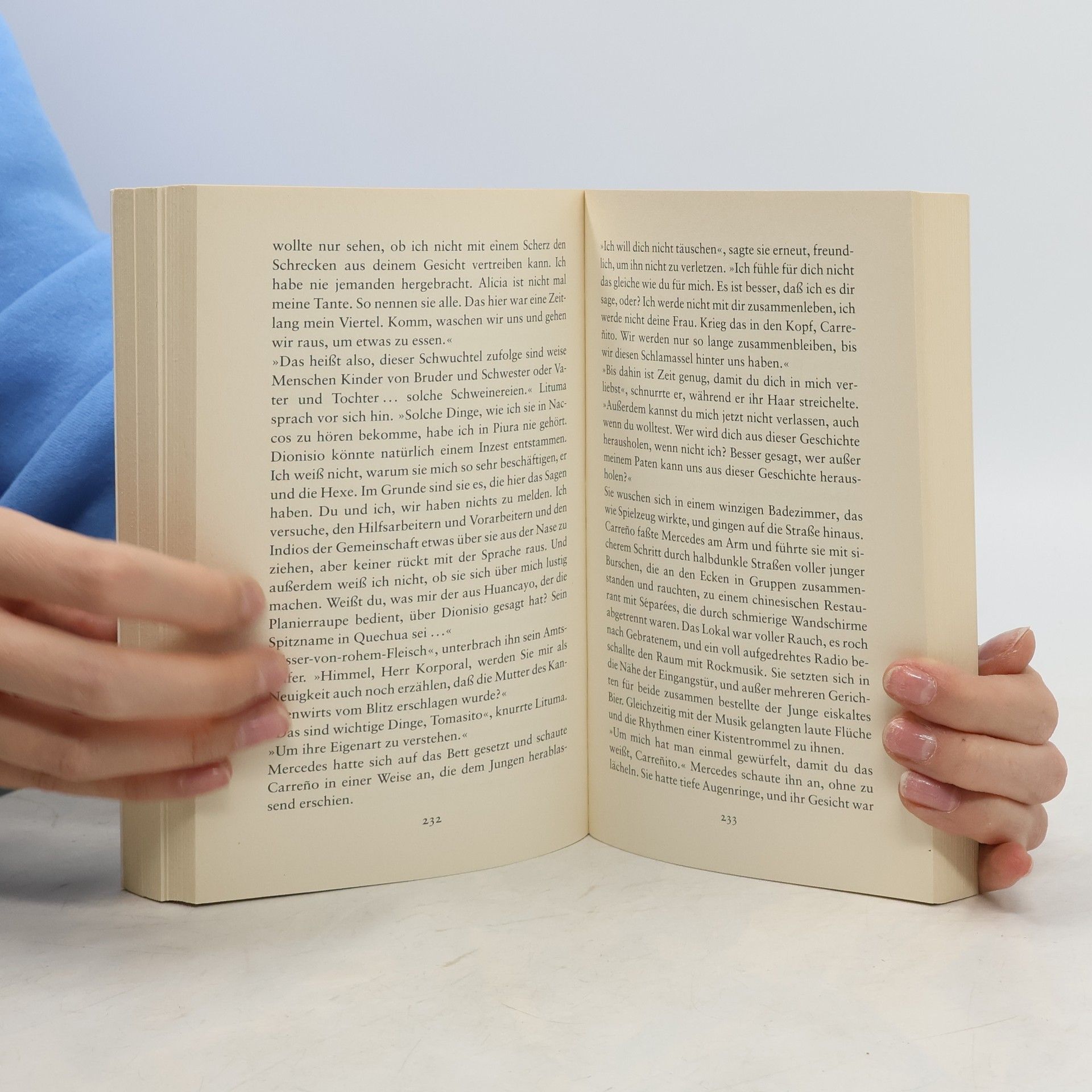 Auf ihrem Posten in den peruanischen Anden sitzen Korporal Lituma und sein Helfer Tomás wie in einer Falle. Unter ständiger Bedrohung durch Terrorkommandos und eine gewalttätige Natur sollen sie das mysteriöse Verschwinden dreier Menschen aufklären. Überall schlägt ihnen Mißtrauen entgegen, unheimliche Geschichten dringen an ihr Ohr. Hätte Tomás nicht die brennende Erinnerung an seine abenteuerliche Liebesgeschichte mit Mercedes, von der er Lituma Nacht für Nacht erzählt, die beiden müßten eingehen in dieser feindseligen, abergläubischen Bergwelt.So abweisend das Klima und so verstörend die Bruchstücke der Wahrheit, die sie nach und nach ans Licht bringen, sie lassen nicht locker. Was in den Bergen geschah, hat die Ausmaße eines unfaßbaren Dramas.
