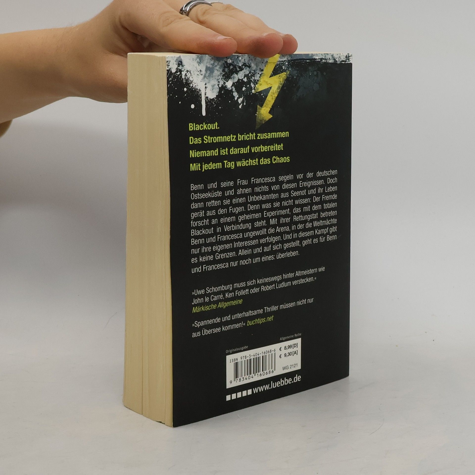 Blackout. Die Städte liegen im Dunkeln, das Leben kommt zum Erliegen. Das gesamte europäische Stromnetz ist zusammengebrochen, und niemand weiß warum. Nur ein Mensch kennt die genaue Ursache, doch er treibt bewusstlos in der Ostsee. Benn Ziegler und seine Frau Francesca retten ihn und geraten damit in einen tödlichen Strudel. Denn der Unbekannte hat an einem geheimem Experiment gearbeitet: eine neue Energiequelle, die so stark ist, dass sie die gesamte Menschheit mit Strom versorgen könnte. Benn und Francesca geraten ins Fadenkreuz von Mächten, die nur ein Ziel haben: Die neue Technologie darf niemals Realität werden.