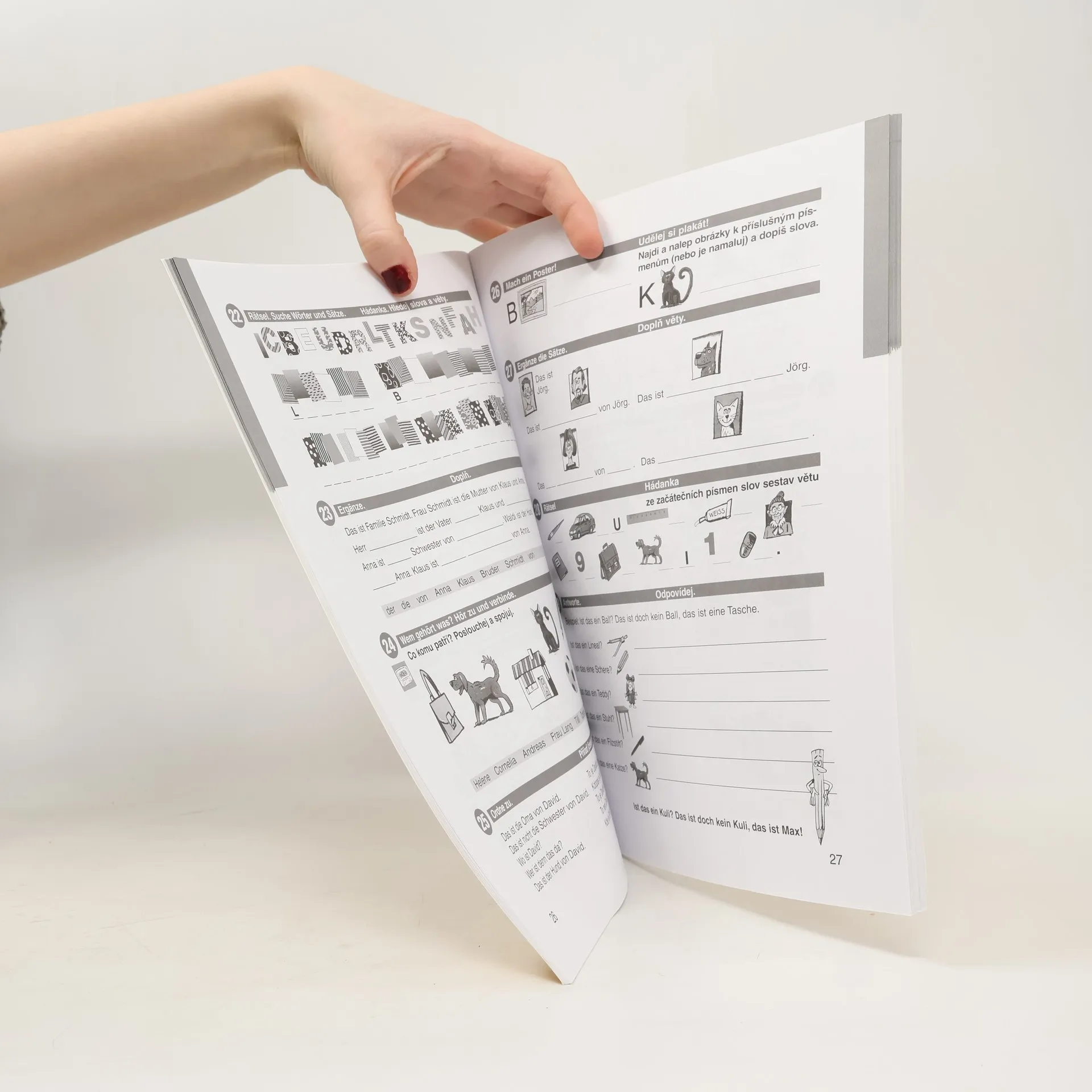 Němčina pro 2.stupeň ZŠ. Třídílná řada učebnic Spaß mit Max je pokračováním dvoudílného souboru Start mit Max určeného pro první stupeň ZŠ. Na první dva díly řady navazuje volně, je možné podle ní vyučovat i v návaznosti na jinou učebnici, se kterou se pracovalo na prvním stupni. Větší pozornost je již v této části věnována psané formě jazyka a gramatice, i když ústní komunikace stále zůstává v popředí zájmu. Novinkou je využití mezipředmětových vztahů v každé lekci učebnice, tj. stránky, které dávají podnět ke spojení němčiny s jinými předměty. Učivo řady Spaß mit Max svým pojetím plně odpovídá požadavkům formulovaným v Rámcovém vzdělávacím programu pro základní vzdělávání, zaměřuje se na vyvážený rozvoj všech kompetencí a ve výsledku odpovídá znalostem na úrovni A2 až částečně B1 podle stupnice SERR pro jazyky. Každý z prvních dvou dílů doporučujeme na 1,5 až 2 roky výuky, a to s ohledem na úroveň konkrétní třídy. Závěrečný díl řady je určen na jeden školní rok, má již jen minimální gramatickou progresi a jeho cílem je především upevnění probraného učiva v přímém kontextu s životem v německy mluvících zemích.