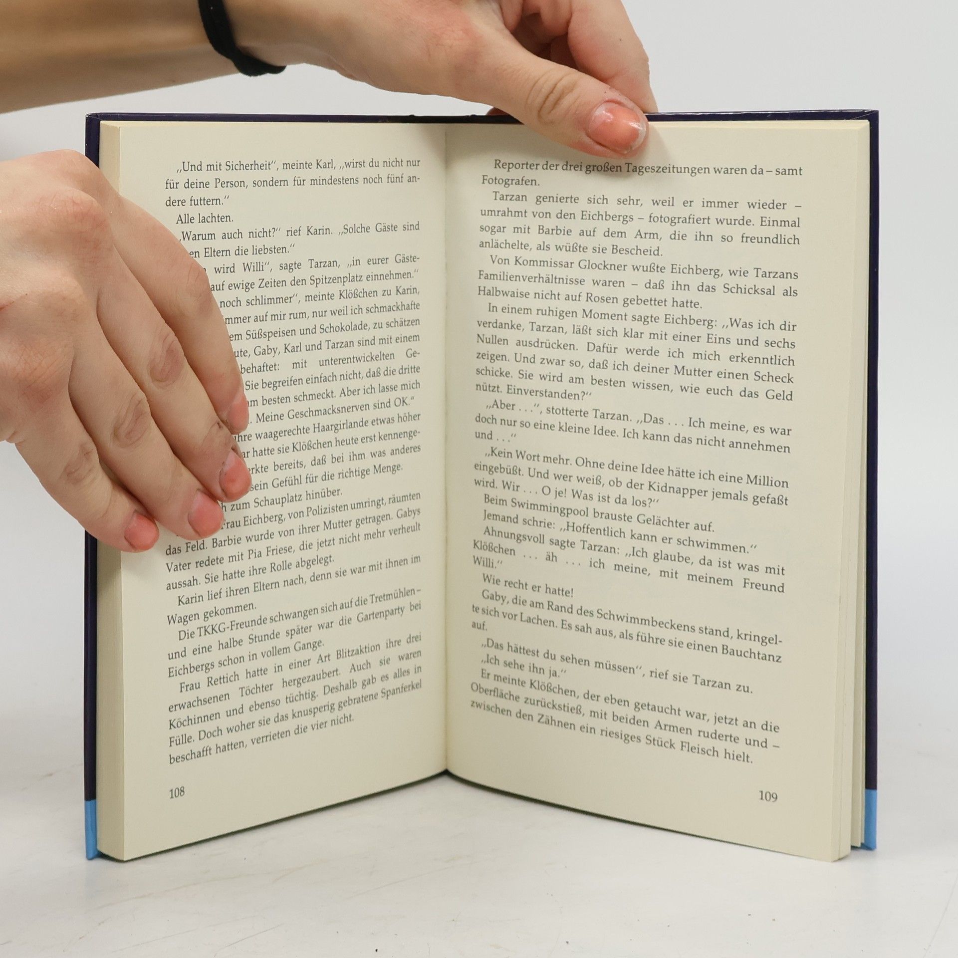 Tarzan und Gaby wollen für die Schülerzeitung eine Reportage über jugendliche Kaufhaus-Diebe schreiben. Dabei lernen sie den Detektiv Hempel kennen, und sie erfahren, dass ausgerechnet Karin Eichberg, Tochter eines Millionärs, stiehlt wie ein Rabe. Das verspricht eine tolle Story zu werden - aber dazu kommt es nicht mehr. Als Tarzan und Gaby die Millionärstochter interviewen wollen, wird deren Halbschwester entführt. Von nun an überschlagen sich die Ereignisse. Erst taucht ein undurchsichtiger Spielbank-Croupier auf, dann wird die Leiterin einer Bankfiliale überfallen und eine wertvolle chinesische Vase bei einem Einbruch gestohlen. Gibt es einen Zusammenhang zwischen Entführung. Überfall und Einbruch? Wie immer lassen unsere vier Freunde von TKKG nicht locker, und als sie den Fall klären, erleben sie eine riesige Überraschung.