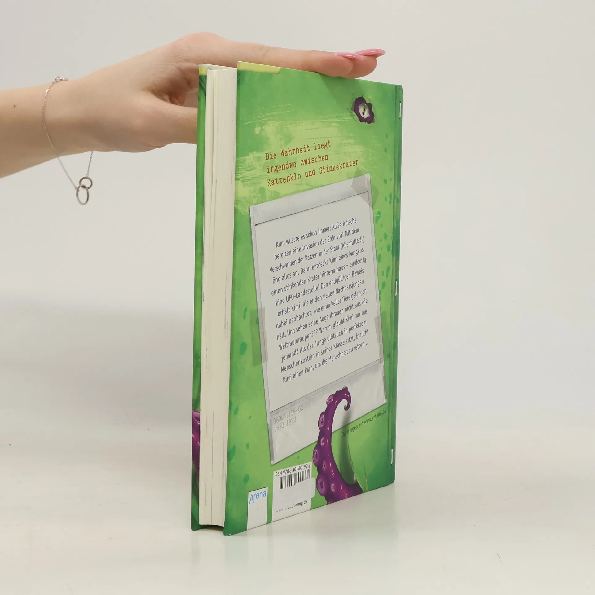 Die Wahrheit liegt irgendwo zwischen Katzenklo und Stinkekrater Kimi wusste es schon immer: Außerirdische bereiten eine Invasion der Erde vor! Mit dem Verschwinden der Katzen in der Stadt (Alienfutter!!) fing alles an. Dann entdeckte Kimi eines Morgens einen stinkenden Krater hinterm Haus – eindeutig eine UFO-Landestelle! Den endgültigen Beweis erhält Kimi, als er den neuen Nachbarsjungen dabei beobachtet, wie er im Keller Tiere gefangen hält. Und sehen seine Augenbrauen nicht aus wie Weltraumraupen??? Warum glaubt Kimi nur nie jemand? Als der Nachbarsjunge plötzlich in perfektem Menschenkostüm in seiner Klasse sitzt, braucht Kimi einen Plan, um die Menschheit zu retten…