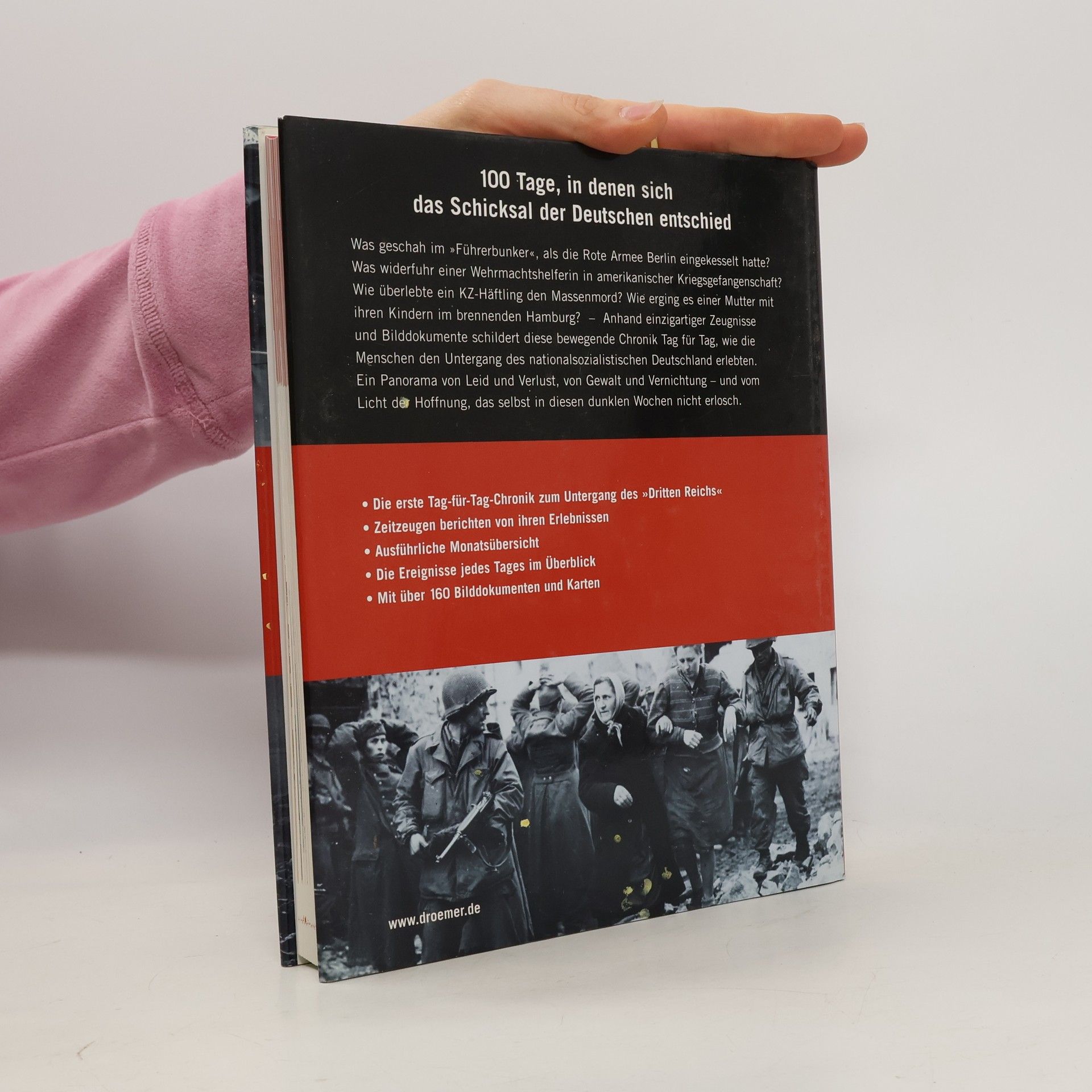 Was geschah zwischen dem 30. Januar 1945 und dem 8./9. Mai 1945? Diese unvergleichliche Chronik schildert Tag für Tag, wie die Menschen den Untergang des Dritten Reichs erlebten.100 Tage, 100 Schicksale, 100 Momentaufnahmen: brennende Städte, Todesangst, Durchhalteparolen, Häuserkampf und Bomberstaffeln, aber auch kleine Augenblicke des Glücks im großen Krieg - ein Panorama von Krieg und Zerstörung, von Schuld und Vergeltung, von tiefer Verzweiflung und zaghaftem Hoffen.