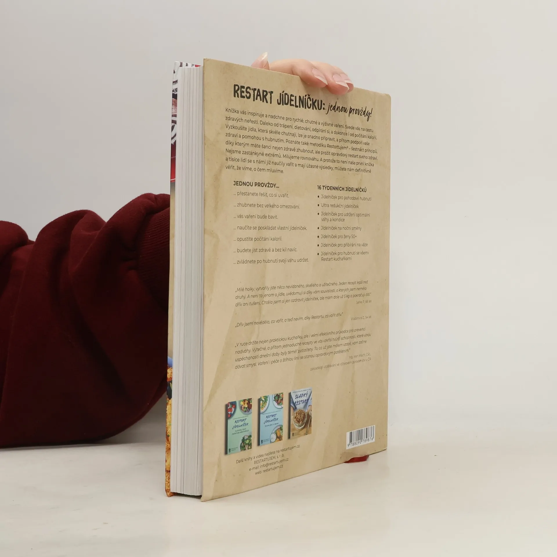 Získej knihu plnou zdravých a chutných receptů. Udělej Restart jídelníčku jednou provždy. Odhal tajemství úspěšného hubnutí bez zázračných pilulek. Efektivně a jednoduše. Začnete malými krůčky. Dejte prostor svému tělu. Nastartujete tělo. Žijeme, co učíme. Už žádné diety.