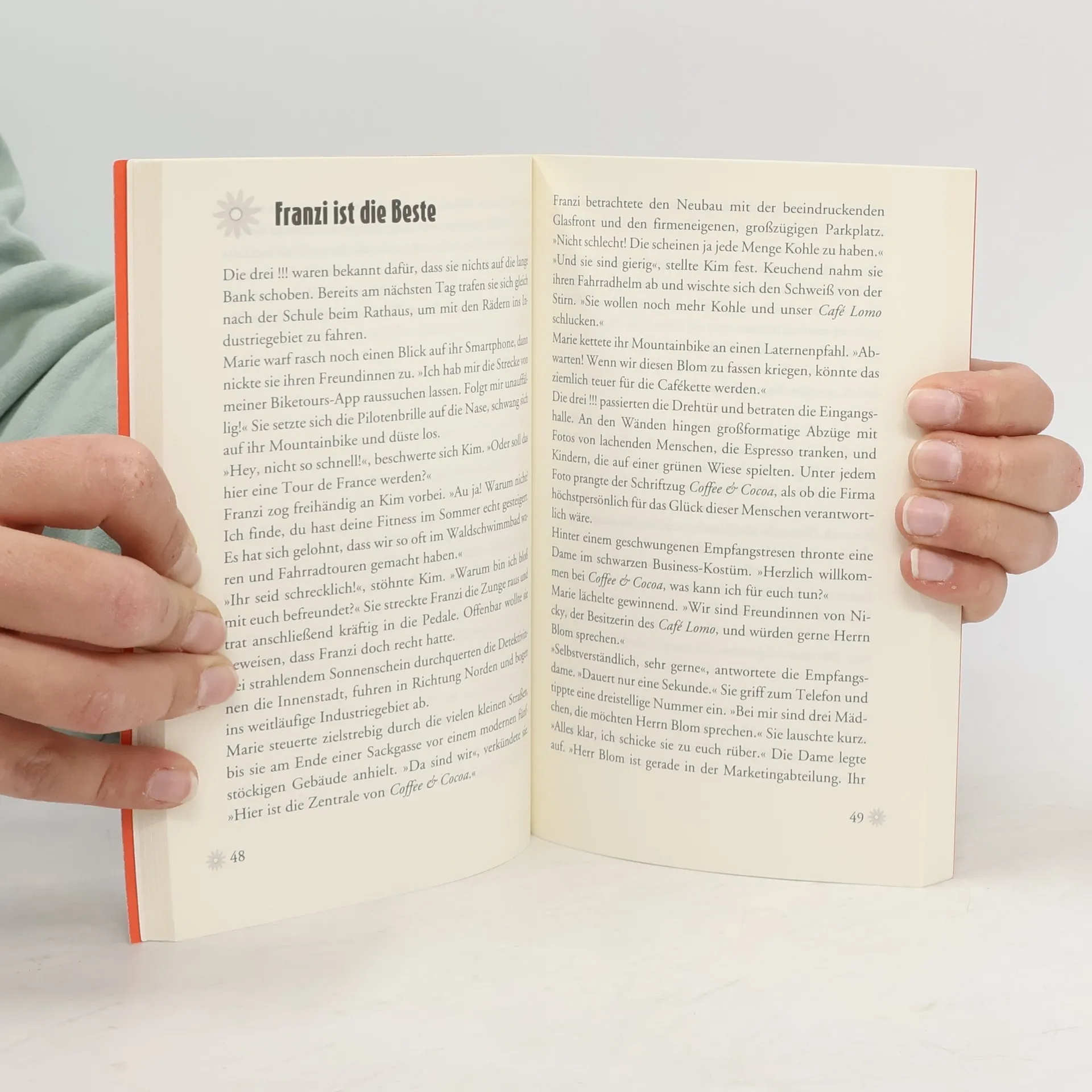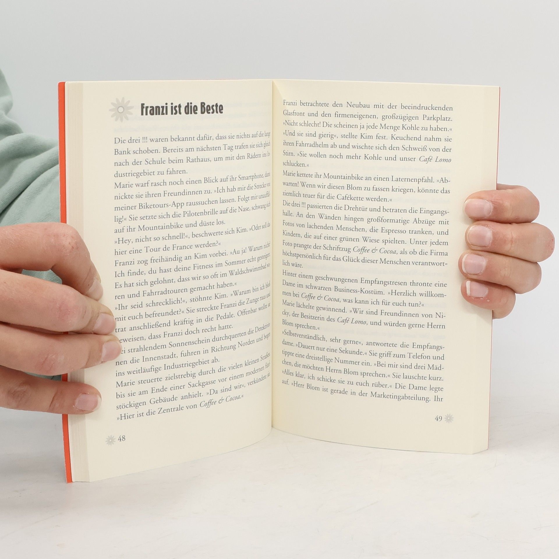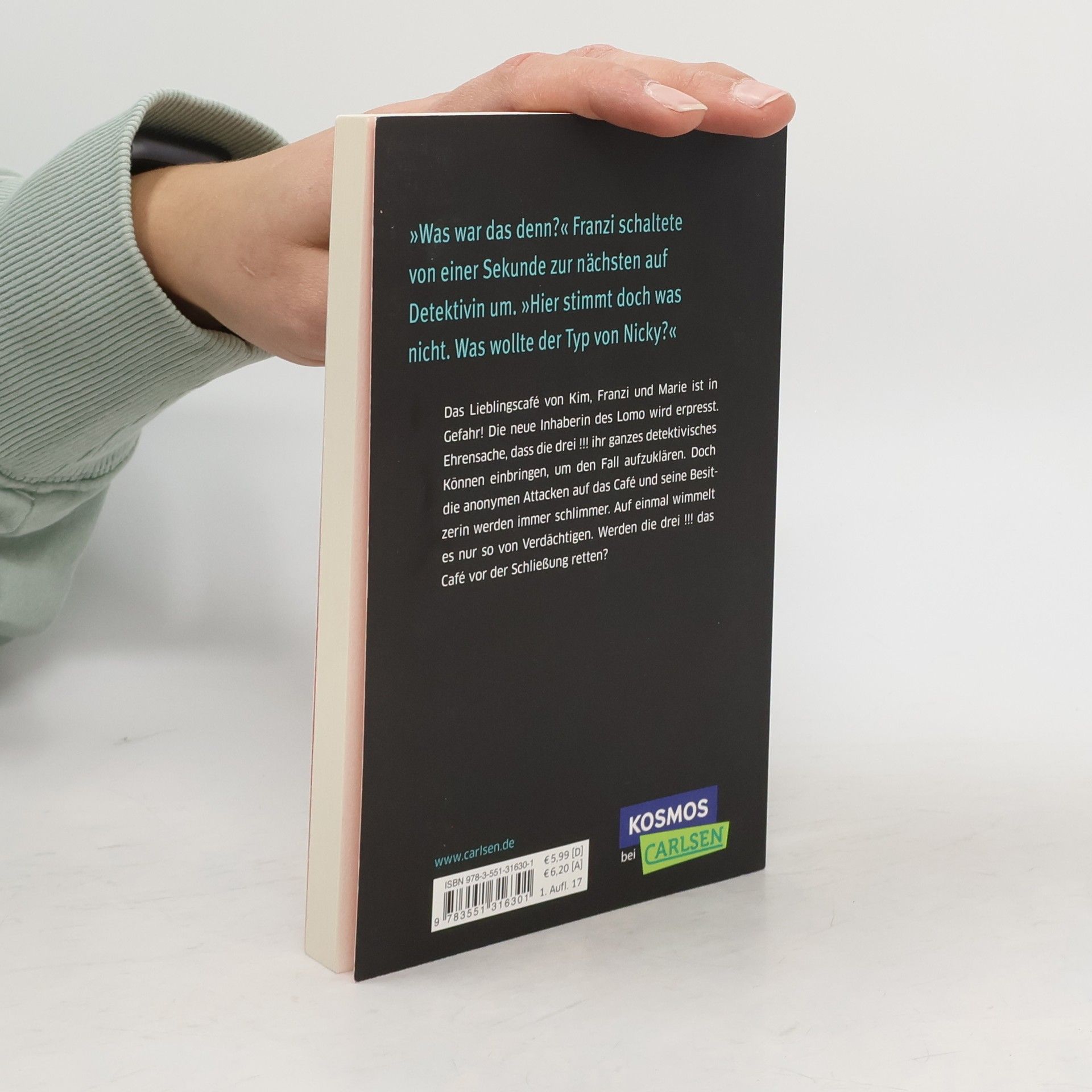 Das Lieblingscafé von Kim, Franzi und Marie ist in Gefahr! Die neue Inhaberin des Lomo wird von einem Fremden verfolgt und erpresst. Ehrensache, dass die drei !!! ihr ganzes detektivisches Können einbringen, um den Fall aufzuklären. Doch die anonymen Attacken auf das Café und seine Besitzerin werden immer schlimmer. Auf einmal wimmelt es nur so von Verdächtigen. Können die drei !!! das Café vor der Schließung retten?
