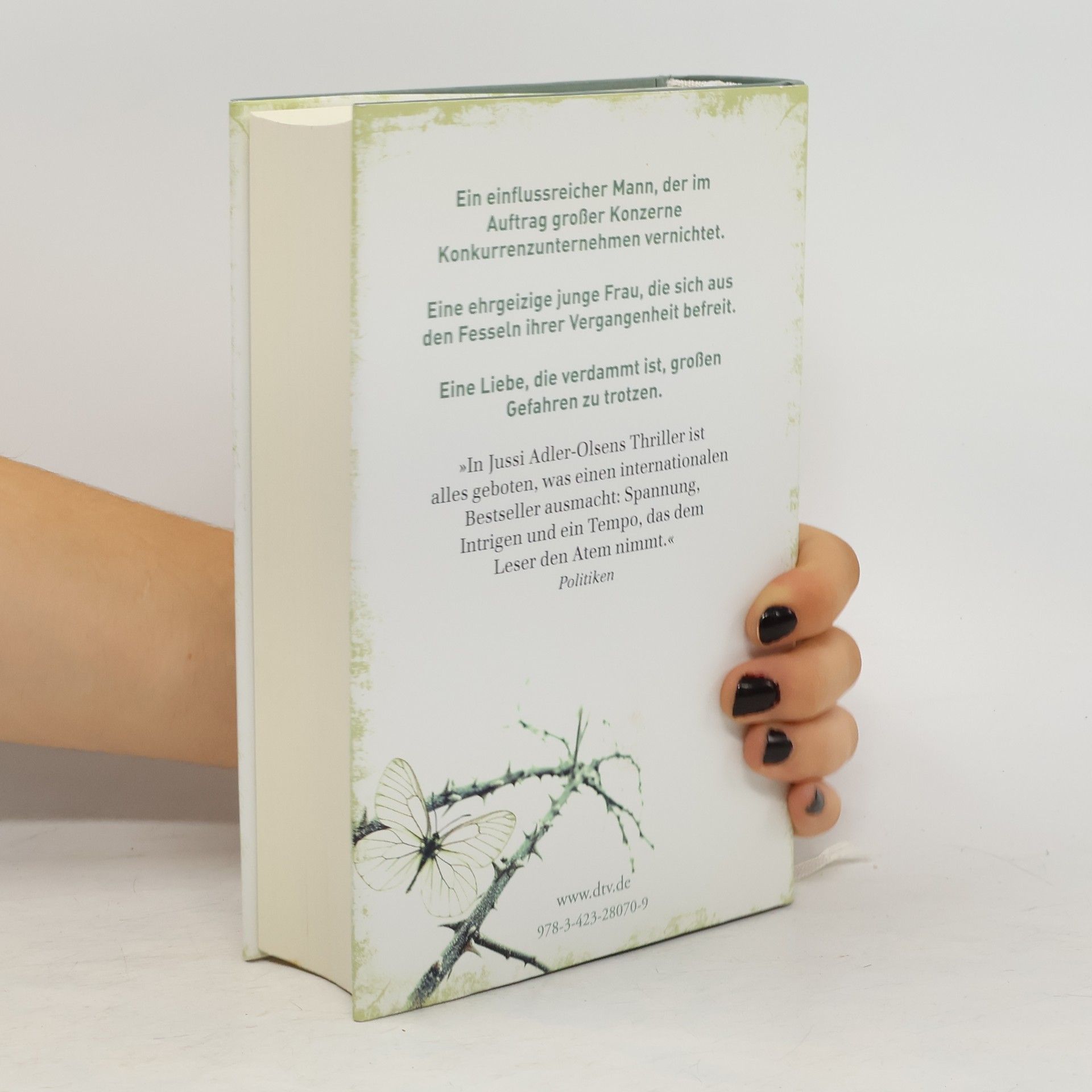 Ein brisanter Thriller um persönliche Verstrickungen in einer undurchsichtigen politischen Wirklichkeit. Jussi Adler-Olsens Politthriller hält unserer Zeit den Spiegel vor. Ein Mann, der professionell Unternehmen vernichtet, und eine Frau, die sich von ihrer Vergangenheit befreit, erleben eine Liebe in Zeiten des Terrors. Geschäftsmann Peter de Boer lebt im Schatten einer ungeheuren Schuld. Als der irakische Geheimdienst ihn nötigt, einen international tätigen Ölkonzern zu zerschlagen, wird sein Albtraum Wirklichkeit. Er droht, in einem Strudel aus globalem Terror, Machtpolitik und Wirtschaftskriminalität zu versinken. Wäre da nicht Nicky Landsaat, eine rätselhafte junge Frau mit glänzendem Verstand. Wie schwer wiegt das Gewissen eines Menschen, wenn die Welt in Schuld versinkt? Jussi Adler-Olsen beschwört die Angstszenarien der Gegenwart und schafft eine Realität, aus der es kein Entrinnen gibt. „Ein beängstigend realistisches Schreckensszenario.“ – Buch aktuell „Adler-Olsen mischt gekonnt Politik, Wirtschaft und Soziologie mit wilden Verfolgungsjagden, Bränden und Explosionen.“ – Regina Krieger, Handelsblatt Neben der Carl-Mørck-Reihe sind bei dtv außerdem weitere Titel von Jussi Adler-Olsen erschienen.