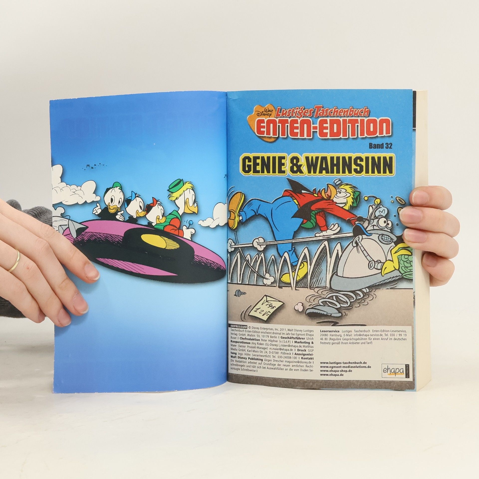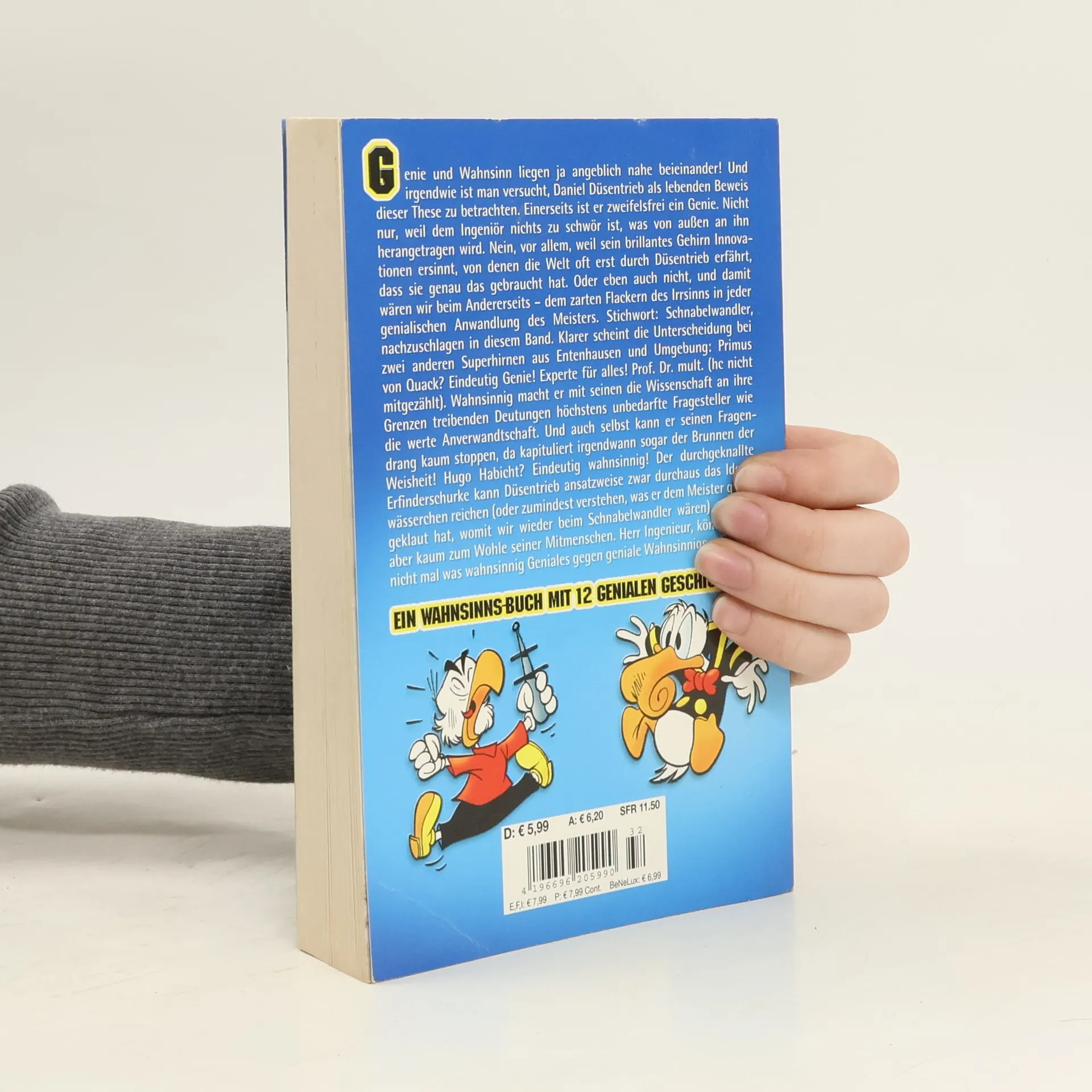 Nebenreihe des Lustigen Taschenbuchs. Die einzelnen Bände sind entweder einem bestimmten Helden aus Entenhausen gewidmet oder präsentieren Geschichten, die unter einem bestimmten Motto stehen. Angeblich liegen Genie und Wahnsinn ja sehr nahe beieinander! Und irgendwie ist man versucht, Daniel Düsentrieb als lebenden Beweis dieser These zu betrachten. Er ist zweifelsfrei ein Genie. Nicht nur, weil dem Ingenieur nichts zu schwer ist, was von außen an ihn herangetragen wird. Nein, vor allem, weil sein brillantes Gehirn Innovationen ersinnt, von denen die Welt oft erst durch Düsentrieb erfährt, dass sie genau das gebraucht hat. Oder eben auch nicht, und damit wären wir beim Andererseits – dem zarten Flackern des Irrsinns in jeder genialischen Anwandlung des Meisters. Herr Ingenieur, könnten Sie nicht mal was wahnsinnig Geniales gegen geniale Wahnsinnige erfinden?