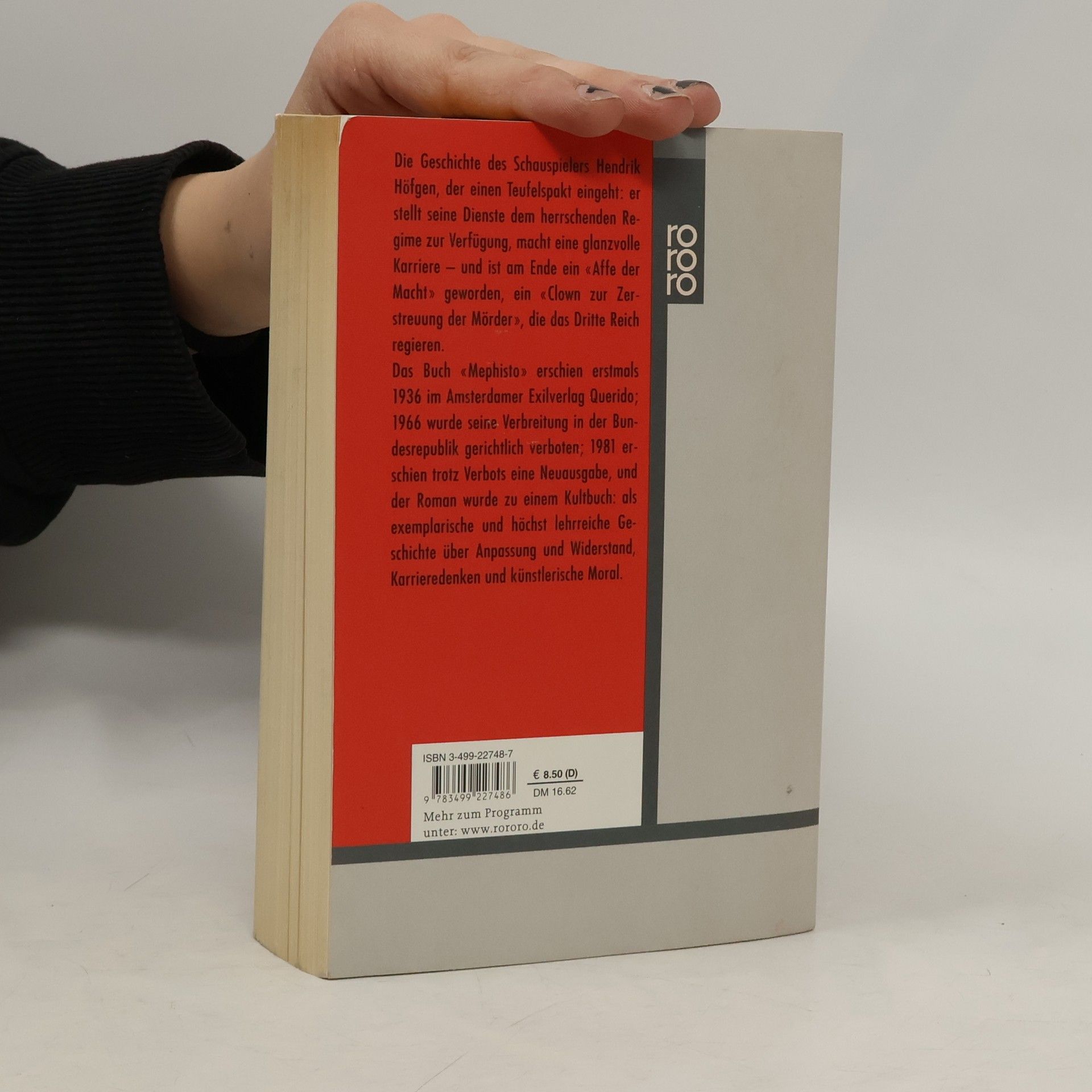 «Mephisto» erschien erstmals 1936 im Amsterdamer Exilverlag Querido, 1966 wurde seine Verbreitung in der BRD gerichtlich verboten, 1981 erschien trotz des Verbots eine Neuausgabe. Der Roman wurde zu einem Kultbuch: eine exemplarische Geschichte über Anpassung und Widerstand, Karrieredenken und künstlerische Moral.