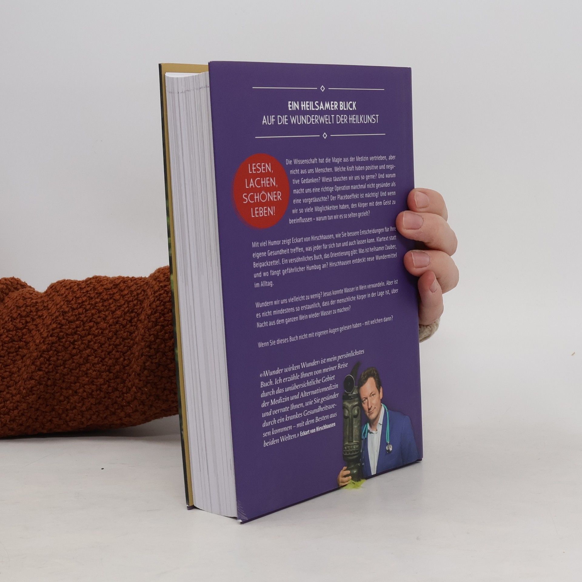 Ein heilsamer Blick auf die Wunderwelt der Heilkunst Die Wissenschaft hat die Magie aus der Medizin vertrieben, aber nicht aus uns Menschen. Welche Kraft haben positive und negative Gedanken? Wieso täuschen wir uns so gerne? Und warum macht uns eine richtige Operation manchmal nicht gesünder als eine vorgetäuschte? Der Placeboeffekt ist mächtig! Und wenn wir so viele Möglichkeiten haben, den Körper mit dem Geist zu beeinflussen – warum tun wir es so selten gezielt? Mit viel Humor zeigt Eckart von Hirschhausen, wie Sie bessere Entscheidungen für Ihre eigene Gesundheit treffen, was jeder für sich tun und auch lassen kann. Klartext statt Beipackzettel. Ein versöhnliches Buch, das Orientierung gibt: Was ist heilsamer Zauber, und wo fängt gefährlicher Humbug an? Hirschhausen entdeckt neue Wundermittel im Alltag. Wundern wir uns vielleicht zu wenig? Jesus konnte Wasser in Wein verwandeln. Aber ist es nicht mindestens so erstaunlich, dass der menschliche Körper in der Lage ist, über Nacht aus dem ganzen Wein wieder Wasser zu machen? Wenn Sie dieses Buch nicht mit eigenen Augen gelesen haben – mit welchen dann? «'Wunder wirken Wunder› ist mein persönlichstes Buch. Ich erzähle Ihnen von meiner Reise durch das unübersichtliche Gebiet der Medizin und Alternativmedizin und verrate Ihnen, wie Sie gesünder durch ein krankes Gesundheitswesen kommen – mit dem Besten aus beiden Welten.» (Eckart von Hirschhausen)