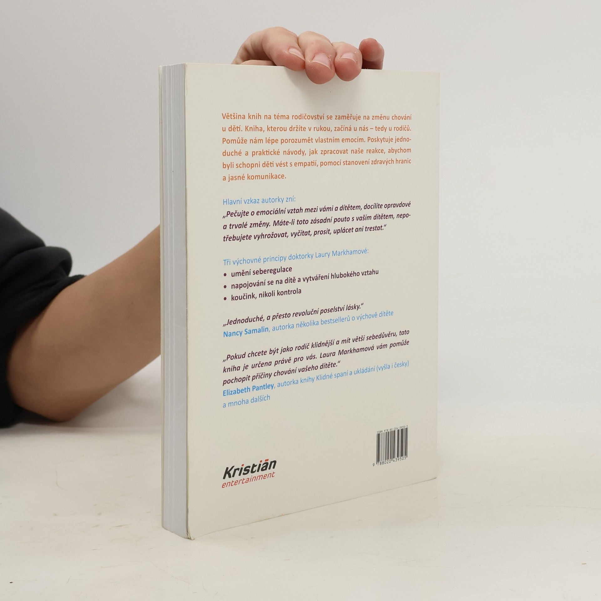 Většina knih na téma rodičovství se zaměřuje na změnu chování u dětí. Kniha, kterou držíte v rukou, začíná u nás – tedy u rodičů. Pomůže nám lépe porozumět vlastním emocím. Poskytuje jednoduché a praktické návody, jak zpracovat naše reakce, abychom byli schopni děti vést s empatií, pomocí stanovení zdravých hranic a jasné komunikace. Hlavní vzkaz autorky zní: „Pečujte o emociální vztah mezi vámi a dítětem, docílíte opravdové a trvalé změny. Máte-li toto zásadní pouto s vaším dítětem, nepotřebujete vyhrožovat, vyčítat, prosit, uplácet ani trestat.“ Tři principy doktorky Laury Markhamové: • umění seberegulace • napojování se na dítě a vytváření hlubokého vztahu • koučink, nikoli kontrola