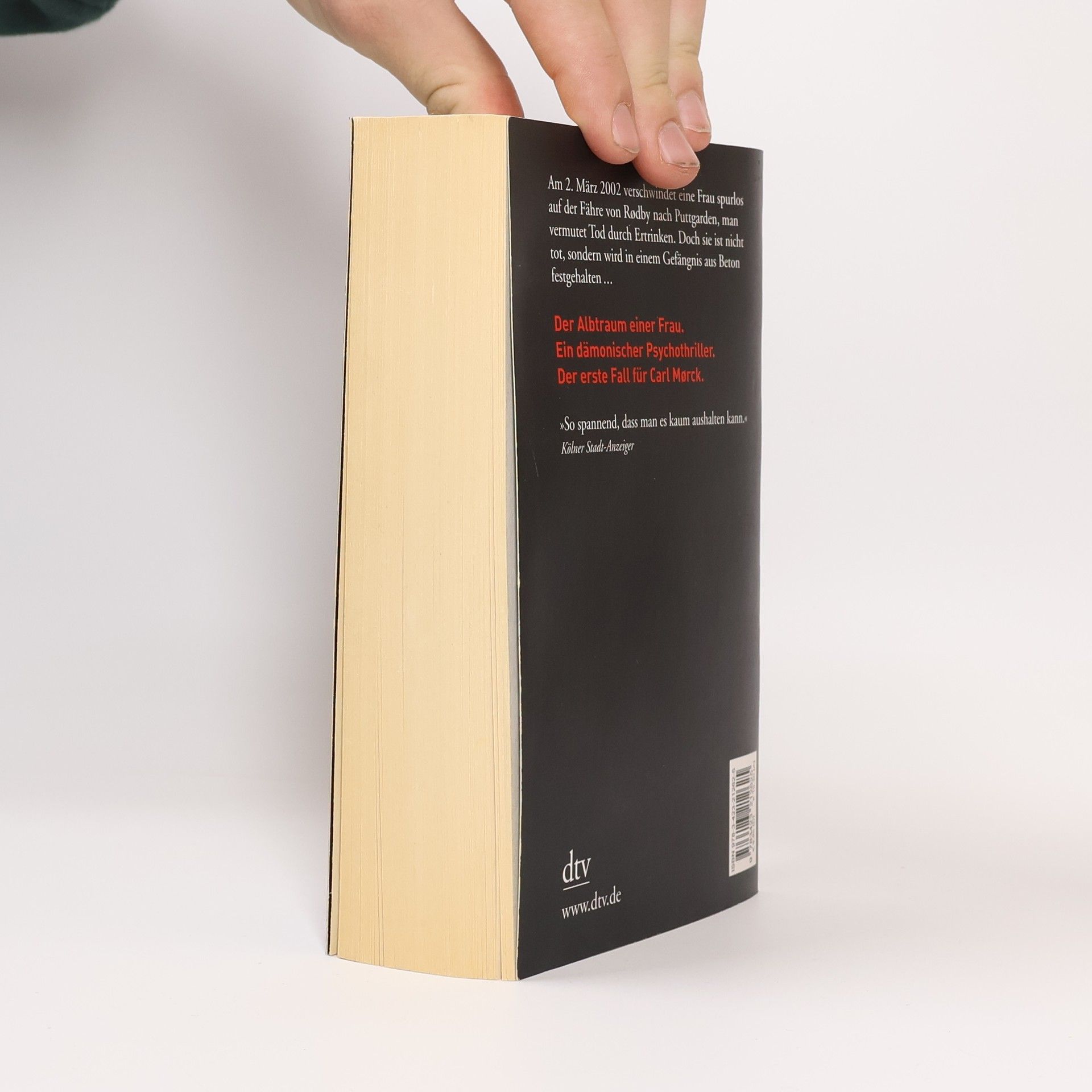 Ein dämonischer Psychothriller und der erste Fall für Carl Mørck vom Sonderdezernat Q für unaufgeklärte Morde der Kopenhagener Polizei. Am 2. März 2002 verschwindet eine Frau auf der Fähre von Rødby nach Puttgarden, und man vermutet, dass sie ertrunken ist. Doch sie lebt und wird in einem Betonverlies gefangen gehalten. Carl Mørck, der neu ernannte Spezialermittler, ist anfangs wenig begeistert von seinem Job, da die Erfolgsquote bei Cold Cases schlecht ist. Sein syrischer Assistent Hafez el-Assad hingegen ist hochmotiviert und entschlossen, den Fall der verschwundenen Politikerin zu lösen. Unbemerkt von ihnen beginnt ein atemloser Wettlauf gegen die Zeit. Der erste Band der Spiegel-Bestseller-Reihe um Carl Mørck und seinen unkonventionellen Assistenten Assad überrascht mit spannenden Wendungen und einem packenden Erzählstil. Kritiker loben das Buch als hart und atmosphärisch dicht, sowie als einen außergewöhnlich spannenden Thriller, der bis zur letzten Seite fesselt. Jussi Adler-Olsen wird mit seiner Erzählweise mit Größen wie Dean Koontz und Stieg Larsson verglichen und begeistert Leser mit seiner Fähigkeit, die Ermittlungen rasant voranzutreiben. Neben der Carl-Mørck-Reihe sind auch weitere Titel des Autors bei dtv erschienen.