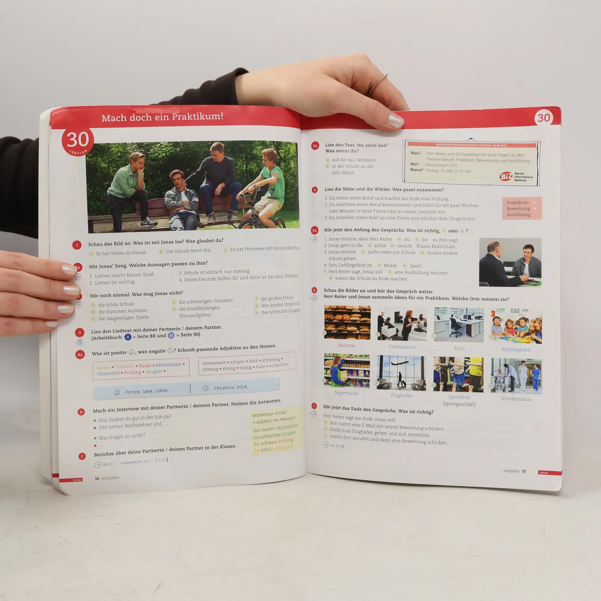 Zielniveau A2.2 Als Halbband oder als zwei Halbbände in einem Paket pro Niveaustufe: - modularer Aufbau: jedes Modul umfasst drei kurze Lektionen à vier Seiten und fünf zusätzliche Modulseiten - attraktive Modul-Einstiegsseite: sie stellt jeweils einen der jugendlichen Protagonisten vor und fasst die kommunikativen Lernziele zusammen - vielseitig: die Modulseiten am Ende enthalten zwei Seiten zu Landeskunde und Projektarbeit, eine Grammatikübersicht und Redemittel sowie eine Seite mit Wiederholungsaufgaben - motivierend: authentisch und sympathisch begleitet jeweils einer der Protagonisten durch ein Modul - leicht zu unterrichten: die Lektionen sind kleinschrittig aufgebaut und vermitteln Grammatik, Wortschatz und Redemittel in einer flachen Progression - abwechslungsreich: ein zuverlässiges Training der verschiedenen sprachlichen Fertigkeiten variiert mit vielen Spielen und Liedern, die den Unterricht auflockern - Anregungen für fächerübergreifenden Unterricht CLIL