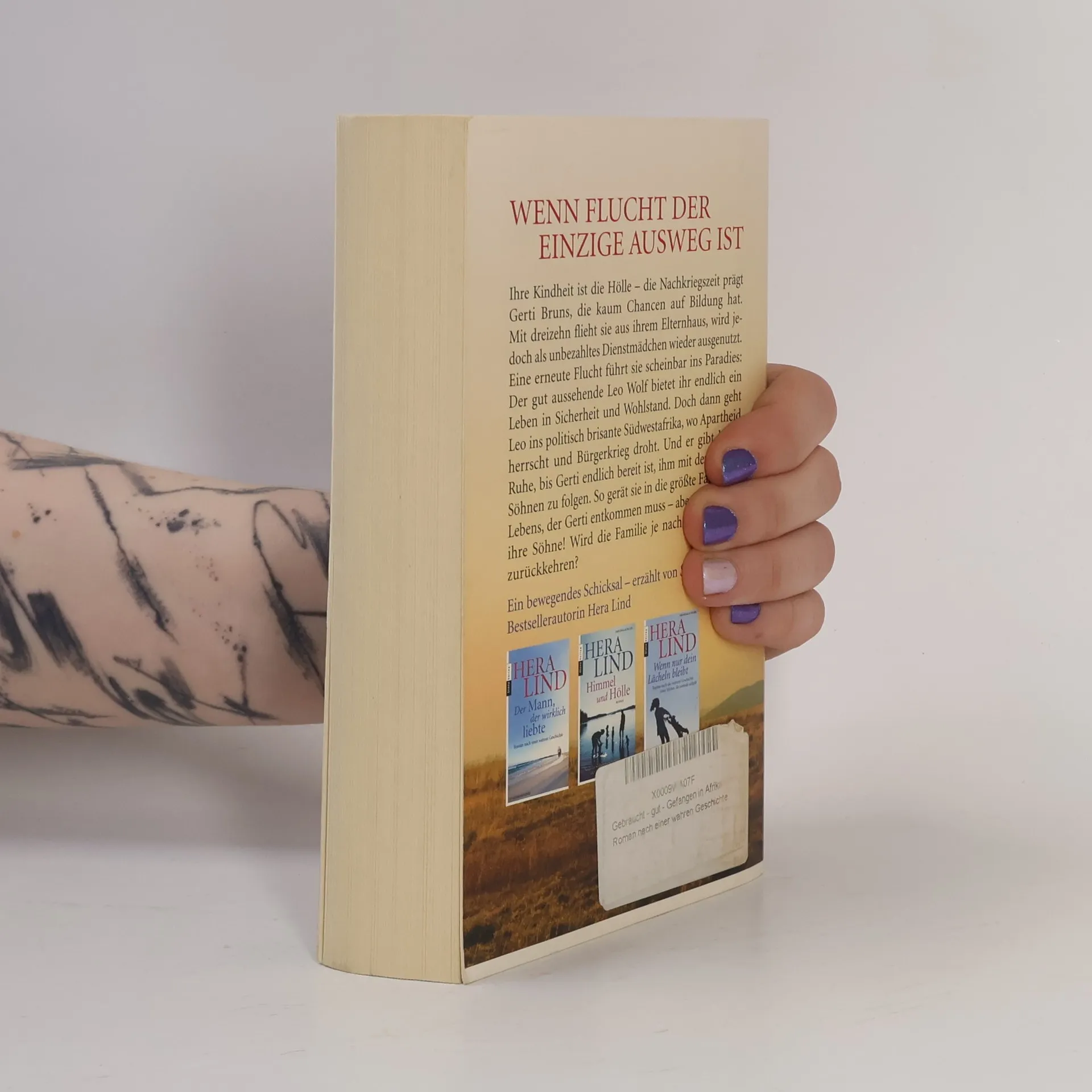 Die Geschichte einer Frau, die in Afrika durch die Hölle geht Ihre Kindheit ist die Hölle – die Nachkriegszeit prägt Gerti Bruns, die kaum Chancen auf Bildung hat. Mit dreizehn flieht sie aus ihrem Elternhaus, wird jedoch als unbezahltes Dienstmädchen wieder ausgenutzt. Eine erneute Flucht führt sie scheinbar ins Paradies: Der gut aussehende Leo Wolf bietet ihr endlich ein Leben in Sicherheit und Wohlstand. Doch dann geht Leo ins politisch brisante Südwestafrika, wo Apartheid herrscht und Bürgerkrieg droht. Und er gibt keine Ruhe, bis Gerti endlich bereit ist, ihm mit den beiden Söhnen zu folgen. So gerät sie in die größte Falle ihres Lebens, der Gerti wieder nur durch Flucht entkommen kann – aber nicht ohne ihre Söhne! Wird die Familie je nach Deutschland zurückkehren?