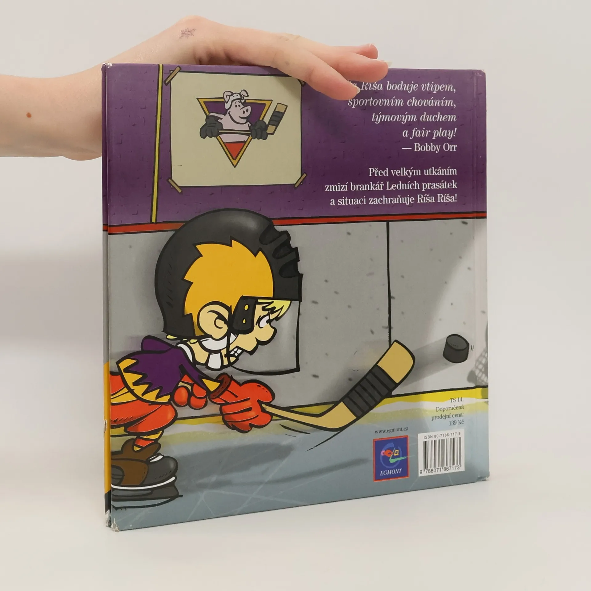Nenáročný příběh o tom, že se nikdy nemá házet flinta do žita, tím méně hokejka. Velká písmena a veselé obrázky knížku přiblíží méně sběhlým čtenářům. Ríša miluje zimu a hokej. Hraje v týmu Ledních prasátek a v sobotu ráno je čeká utkání s neporazitelnými Draky. Všichni Ríšovi spoluhráči mají nepříjemné šimrání kolem žaludku a když ještě zmizí brankář Čenda, vypadá to opravdu zle. Ale říká se, že když člověk opravdu chce, zvládne všechno na světě.