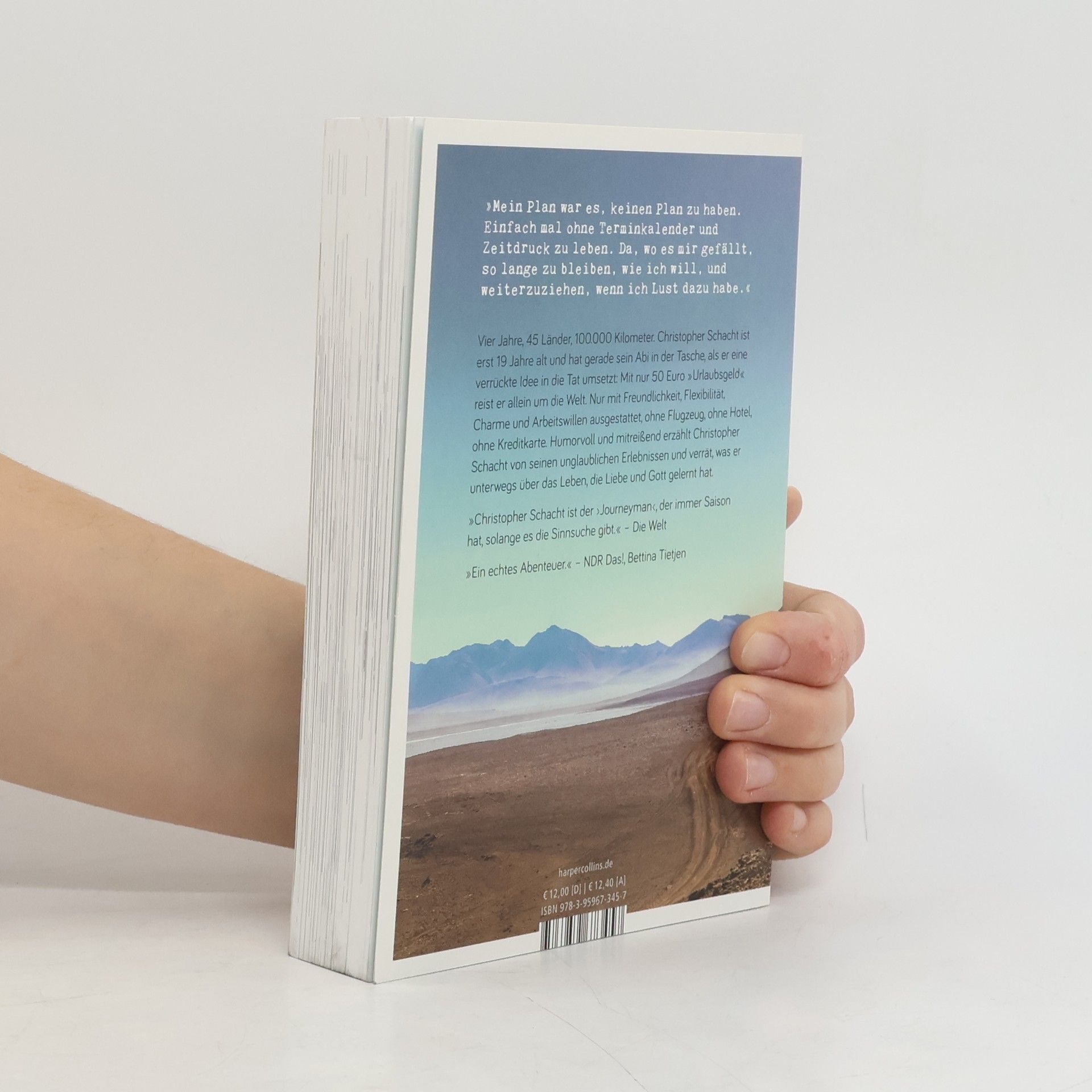 Vier Jahre, 45 Länder, 100.000 Kilometer - und ein Überraschungserfolg! Christopher Schacht ist erst 19 Jahre alt und hat gerade sein Abi in der Tasche, als er eine verrückte Idee in die Tat umsetzt: Mit nur 50 Euro »Urlaubsgeld« reist er allein um die Welt. Nur mit Freundlichkeit, Flexibilität, Charme und Arbeitswillen ausgestattet, ohne Flugzeug, ohne Hotel, ohne Kreditkarte. Humorvoll und mitreißend erzählt Christopher Schacht von seinen unglaublichen Erlebnissen und verrät, was er unterwegs über das Leben, die Liebe und Gott gelernt hat. Eine faszinierende Story, die Lust macht, Neues zu wagen und seine Träume zu leben! Ein echter Pageturner fürs nächste Reisegepäck. „Christopher Schacht ist der “Journeyman„, der [...] immer Saison hat, solange es die Sinnsuche gibt.“ Die Welt „Das Buch ist großartig!“ Sat.1-Frühstücksfernsehen „Ein echtes Abenteuer, zumal er erst 19 war, als er losgezogen ist, und 23 bei seiner Rückkehr.“ NDR Das!, Bettina Tietjen „Nach seinem Abitur wollte Christopher Schacht raus aus seinem Hamsterrad in Deutschland und etwas Neues erleben. Und ohne viel vorwegzunehmen: Das hat er geschafft!“ RTL Next