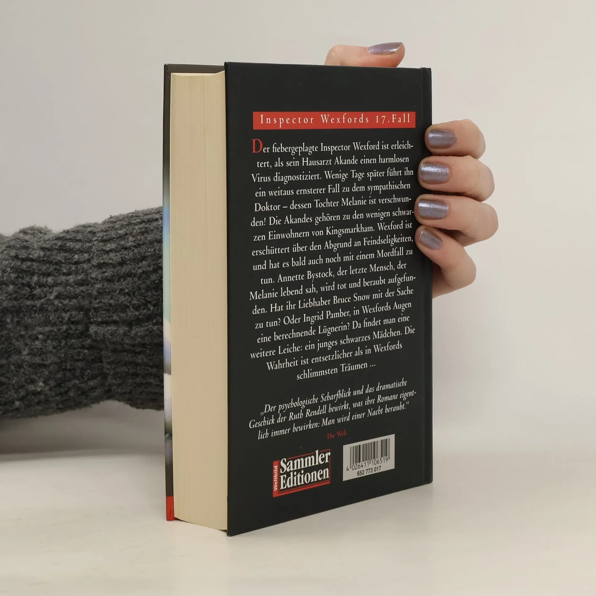 Als Melanie, die Tochter von Inspektor Wexfords neuem Hausarzt Dr. Akande, spurlos verschwindet, bewegt den Inspektor mehr als nur berufliches Interesse an dem Fall. Zunächst will niemand an das Schlimmste denken, aber dann entdeckt man die Leiche einer jungen schwarzen Frau. Doch als die Akandes die Tote identifizieren sollen, stellt sich heraus, daß es sich gar nicht um Melan handelt.