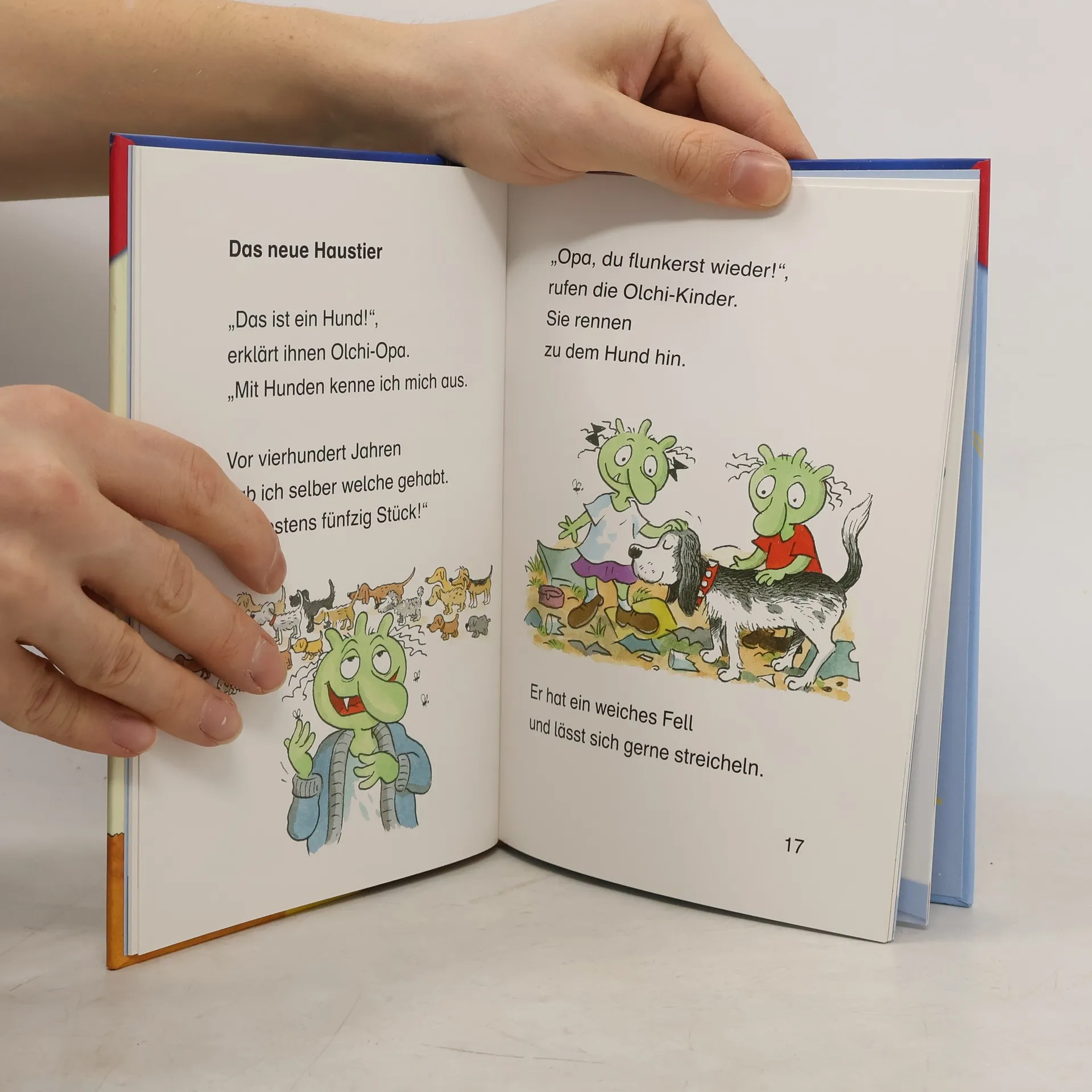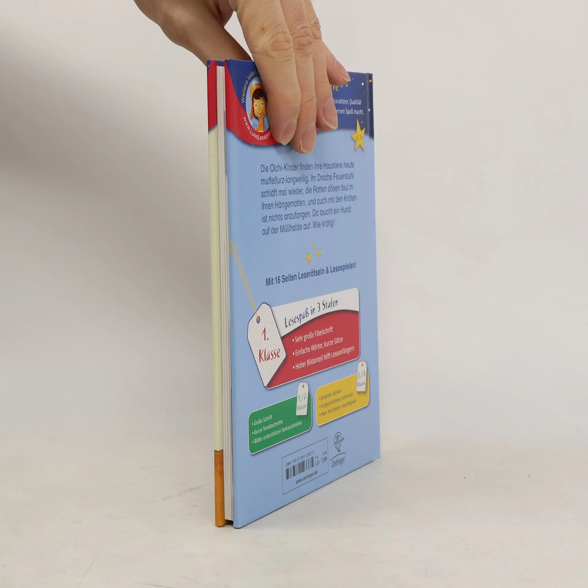 Schleime, Schlamm und Hundedreck! Ein Riesenspaß für Olchifans und Leseanfänger. Die Olchikinder finden ihre Haustiere heute furzlangweilig. Feuerstuhl schläft, die Ratten dösen und die Fliegen fallen tot auf den Boden. Wie krötig, dass gerade jetzt ein Hund auf der Müllhalde auftaucht! Der kann sogar Kunststücke und liebt es, im Dreck zu wühlen! Willkommen in der Welt der Olchis, liebe Leseanfänger der ersten Lesestufe! Lesen lernen mit „Büchersterne“ für die 1. Klasse: sehr große Fibelschrift, einfache Wörter, kurze Sätze und ein hoher Bildanteil für die jüngsten Leseanfänger. Dazu 16 Seiten Leserätsel und Lesespiele im Anhang.
