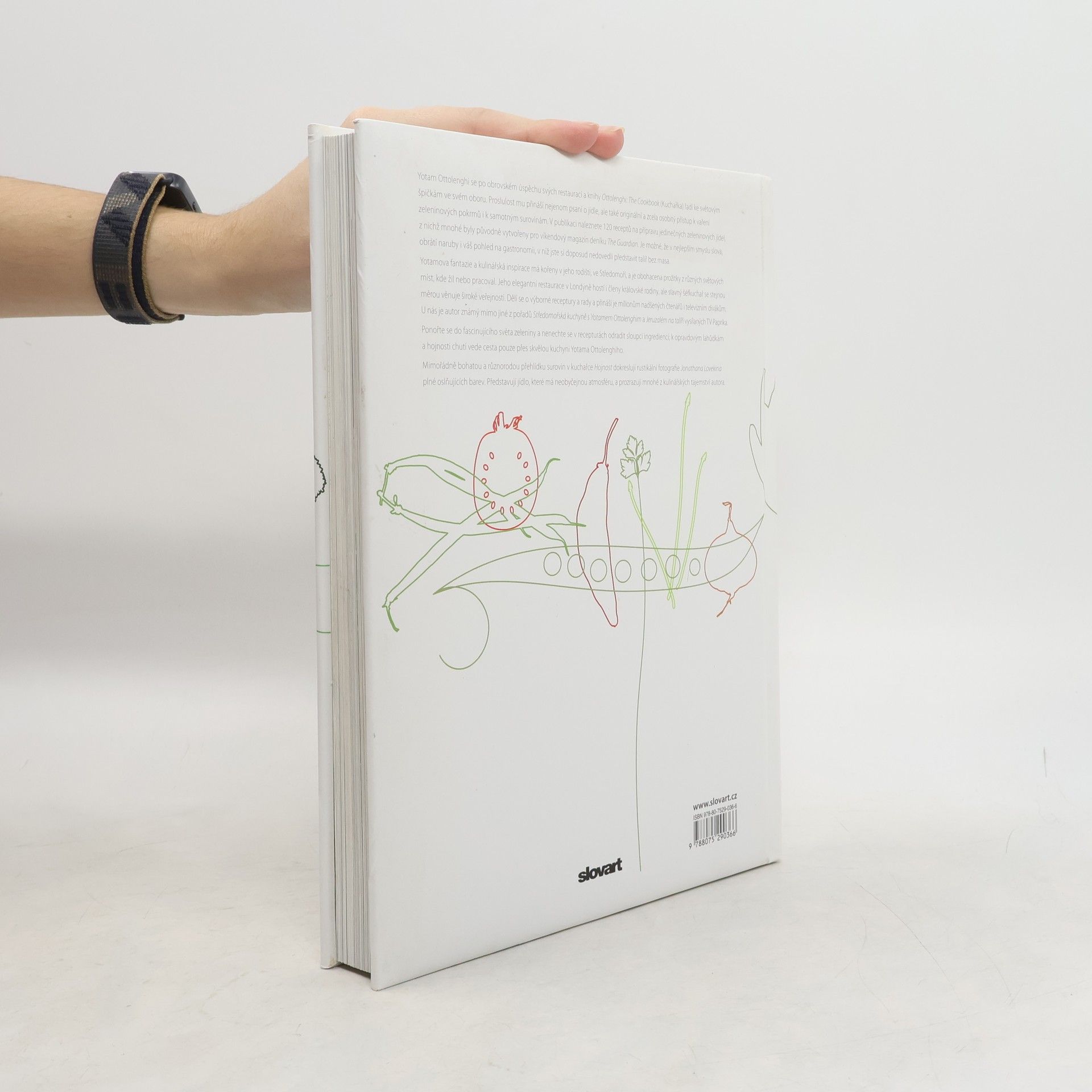 Kulinářské skvosty mistra zeleninové kuchyně. Yotam Ottolenghi se po úspěchu svých restaurací a knih řadí ke světovým kulinářským špičkám. Proslulost mu přináší nejenom psaní o jídle, ale také osobitý přístup k vaření zeleninových jídel. V publikaci naleznete 120 jedinečných zeleninových receptů. Je možné, že obrátí naruby i váš pohled na gastronomii, v níž jste si doposud nedovedli představit talíř bez masa. Yotamova fantazie a inspirace má kořeny v rodném prostředí, Středomoří, a je obohacena prožitky z různých světových míst, kde žil nebo pracoval. U nás je autor známý mimo jiné z pořadů Středomořská kuchyně s Yotamem Ottolenghim a Jeruzalém na talíři vysílanými TV Paprika. Ponořte se do fascinujícího světa zeleniny, k opravdovým lahůdkám a hojnosti chutí vede cesta pouze přes skvělou kuchyni Yotama Ottolenghiho.