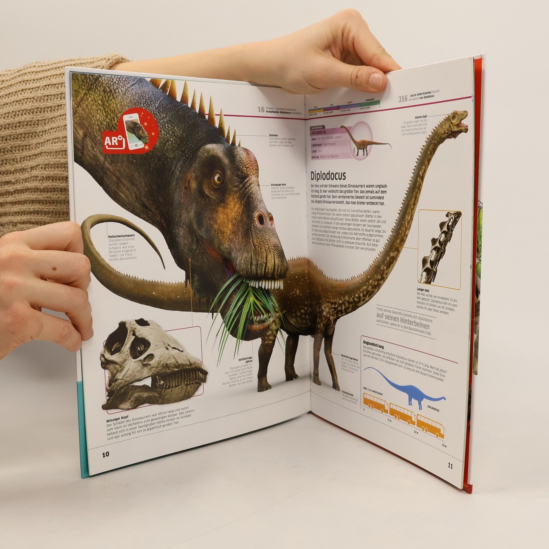 Die Dinos sind los! In diesem spannenden Sachbuch werden Fleisch- und Pflanzenfresser detailliert betrachtet, einschließlich anschaulicher Grafiken zur Arten-Klassifikation und einer praktischen Übersetzungstabelle für wissenschaftliche Sauriernamen. Die beliebte Kindersachbuchreihe memo Wissen entdecken bietet faszinierendes Wissen in kurzen, lesefreundlichen Texten und vielen detailreichen Bildern. Mit einem frischen, übersichtlichen Layout und einem illustrierten Chamäleon-Charakter, der durch das Buch führt und interessante Details erklärt, wird das Lernen zum Erlebnis. Zudem gibt es ein beidseitig bedrucktes Poster zum Aufhängen im Kinderzimmer – mit einem spektakulären Foto auf der einen und einer informativen Grafik auf der anderen Seite. Rubriken wie „Chronik“ oder „Neugierig geworden?“ vertiefen das Wissen, während ein Glossar am Ende des Buches einen klaren Überblick bietet. Hier wird großes Wissen in kleinen Häppchen vermittelt – mit Aha-Erlebnissen und Wow-Effekten auf jeder Seite! Von der beeindruckenden Anatomie über das Aussterben bis zu heutigen Fossilienfunden wird Know-how über Dinosaurier sachlich kompetent, leicht verständlich und unterhaltsam präsentiert. Ideal für junge Leser als Ergänzung zum Schulunterricht oder für Referate. Verfügbar bei Antolin.de.