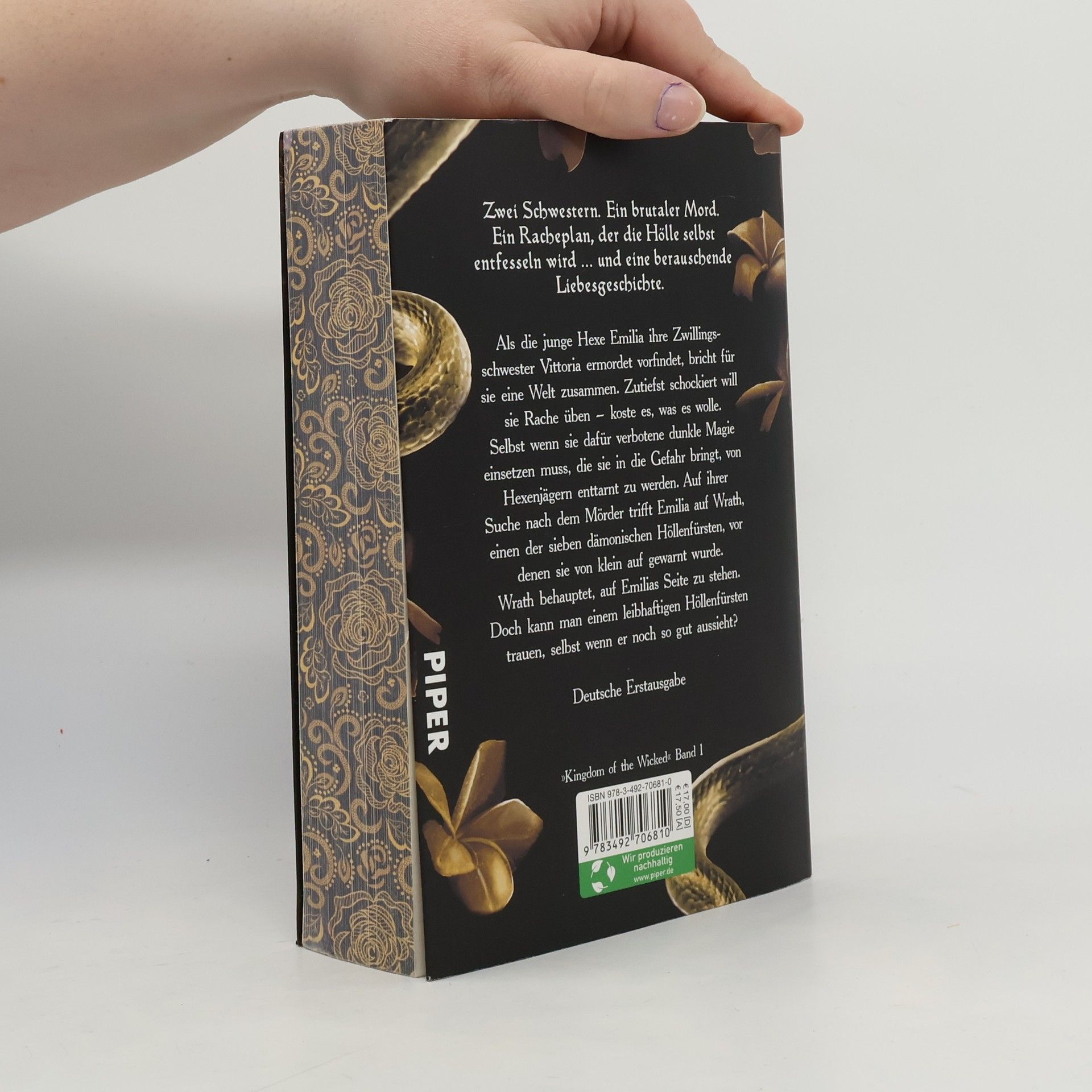 Zwei Schwestern. Ein brutaler Mord. Ein Racheplan, der die Hölle selbst entfesseln wird … und eine berauschende Liebesgeschichte. Als die junge Hexe Emilia ihre Zwillingsschwester Vittoria ermordet vorfindet, bricht für sie eine Welt zusammen. Zutiefst schockiert will sie Rache üben – koste es, was es wolle. Selbst wenn sie dafür verbotene dunkle Magie einsetzen muss, die sie in die Gefahr bringt, von Hexenjägern enttarnt zu werden. Auf ihrer Suche nach dem Mörder trifft Emilia auf Wrath, einen der sieben dämonischen Höllenfürsten, vor denen sie von klein auf gewarnt wurde. Wrath behauptet, auf Emilias Seite zu stehen. Doch kann man einem leibhaftigen Höllenfürsten trauen, selbst wenn er noch so gut aussieht? Der atemberaubende Auftakt der gefeierten »Kingdom of the Wicked«-Reihe - jetzt auf Deutsch! Band 1: Kingdom of the Wicked – Der Fürst des Zorns Band 2: Kingdom of the Wicked – Die Königin der Hölle Band 3: Kingdom of the Wicked – Die Göttin der Rache