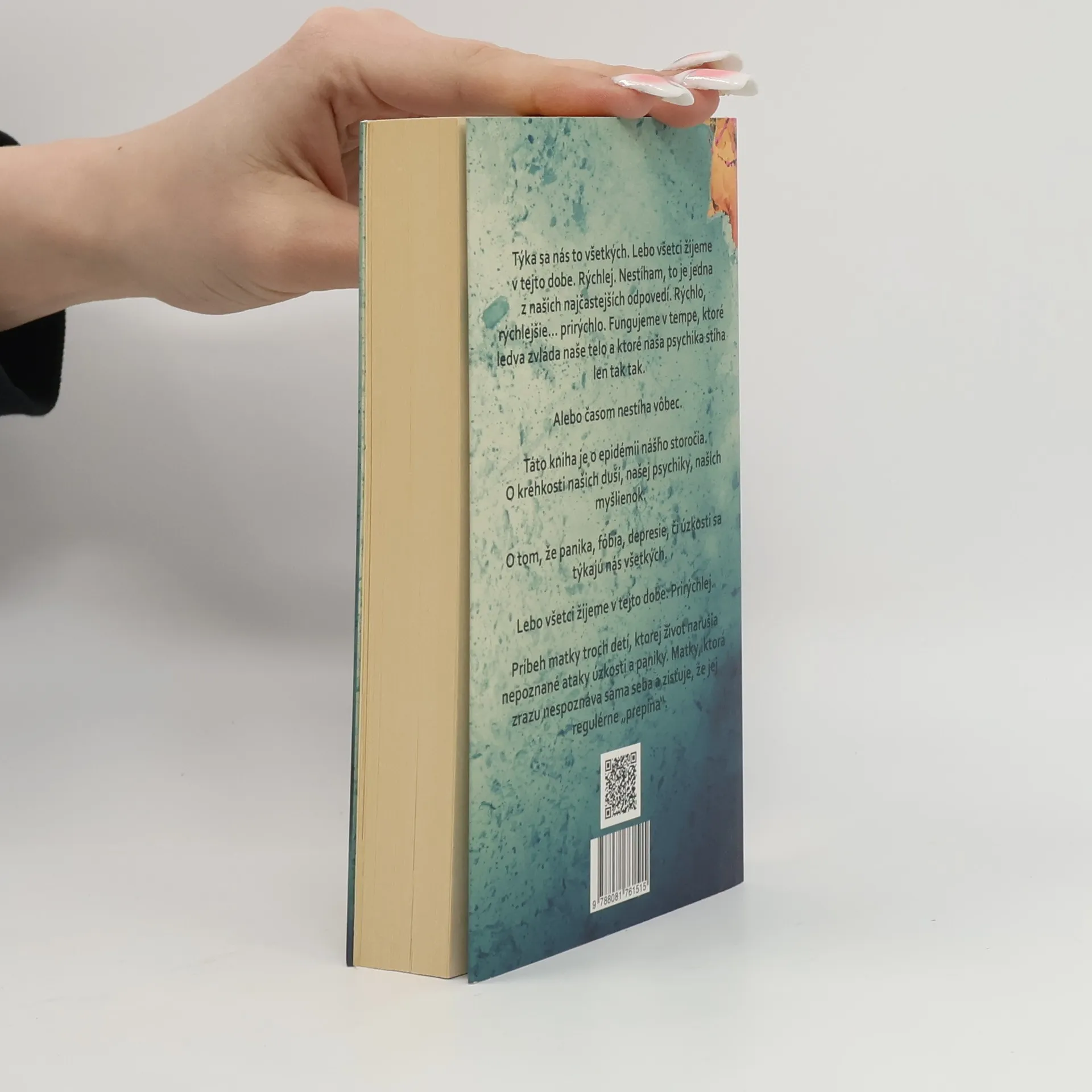 Týka sa nás to všetkých. Lebo všetci žijeme v tejto dobe. Rýchlej. Nestíham, to je jedna z našich najčastejších odpovedí. Rýchlo, rýchlejšie... prirýchlo. Fungujeme v tempe, ktoré ledva zvláda naše telo a ktoré naša psychika stíha len tak tak. Alebo časom nestíha vôbec. Táto kniha je o epidémii nášho storočia. O krehkosti našich duší, našej psychiky, našich myšlienok. O tom, že panika, fóbia, depresie, či úzkosti sa týkajú nás všetkých. Lebo všetci žijeme v tejto dobe. Prirýchlej. Príbeh matky troch detí, ktorej život narušia nepoznané ataky úzkosti a paniky. Matky, ktorá zrazu nespoznáva sama seba a zisťuje, že jej regulérne "prepína". Zdroj: pantarhei.sk