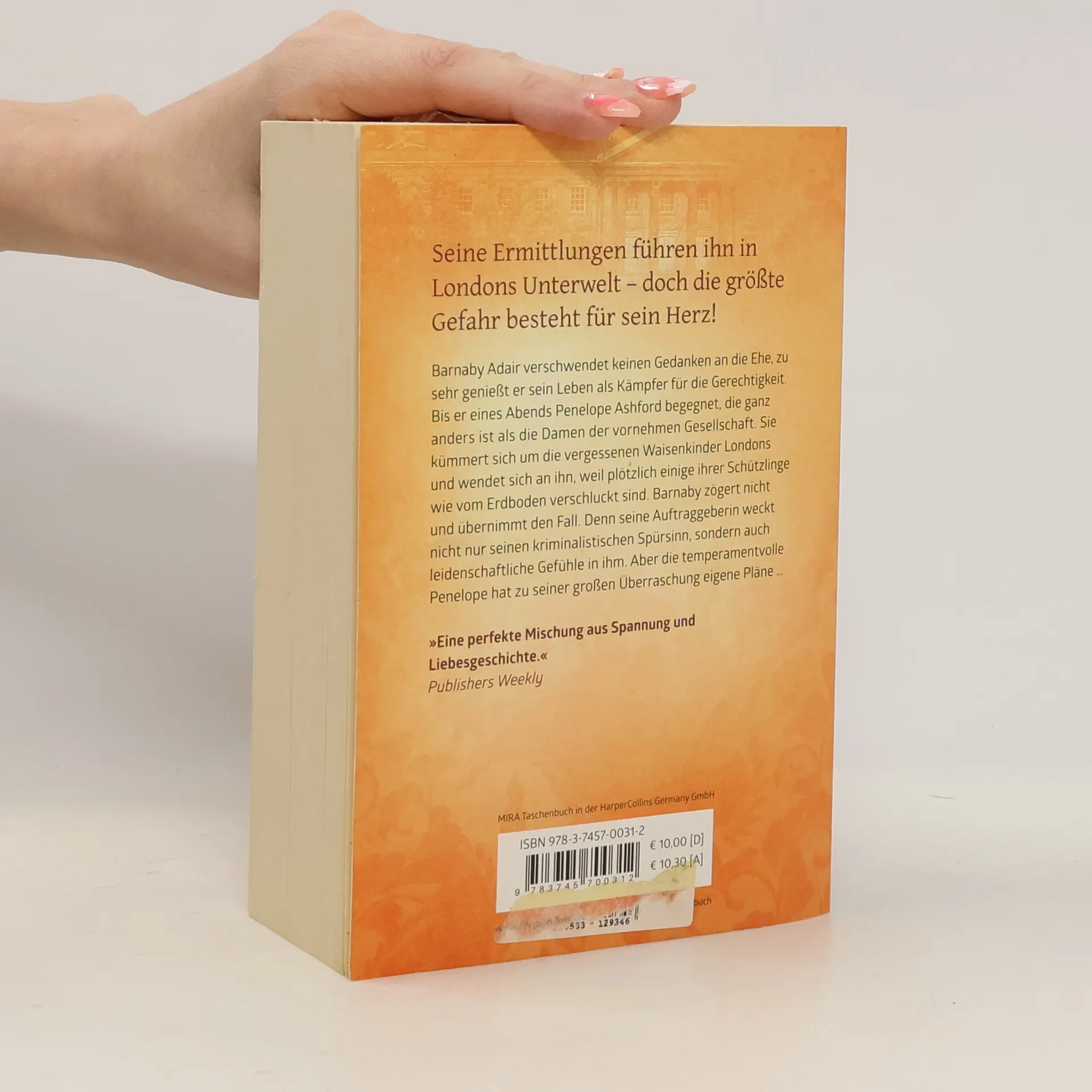 Barnaby Adair verschwendet keinen Gedanken an die Ehe, zu sehr genießt er sein Leben als Detektiv. Bis er eines Abends Penelope Ashford begegnet, die ganz anders ist als die Damen der vornehmen Gesellschaft. Sie kümmert sie sich um die vergessenen Waisenkinder Londons und wendet sich an ihn, weil plötzlich einige ihrer Schützlinge wie vom Erdboden verschluckt sind. Barnaby zögert nicht und übernimmt den Fall. Denn seine Auftraggeberin weckt nicht nur seinen kriminalistischen Spürsinn, sondern auch leidenschaftliche Gefühle in ihm. Aber die temperamentvolle Penelope hat zu seiner großen Überraschung eigene Pläne … »Für Fans von romantischen Liebesromanen uneingeschränkt zu empfehlen.« LovelyBooks