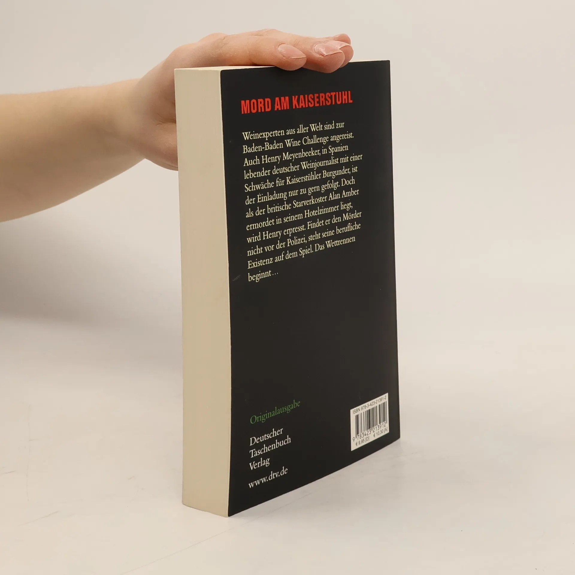 Mord am Kaiserstuhl Henry Meyenbeeker, in Spanien lebender deutscher Weinjournalist, liebt Kaiserstühler Burgunder. Da kommt die Einladung zur Baden-Baden Wine Challenge wie gerufen. Doch als der Starverkoster Alan Amber ermordet wird, ändert sich alles. Meyenbeeker wird erpresst: Findet er den Mörder nicht vor der Polizei, steht seine berufliche Existenz auf dem Spiel. Das Wettrennen beginnt ...