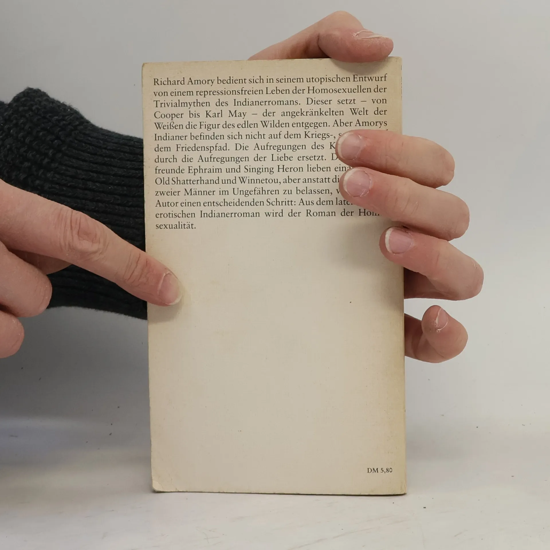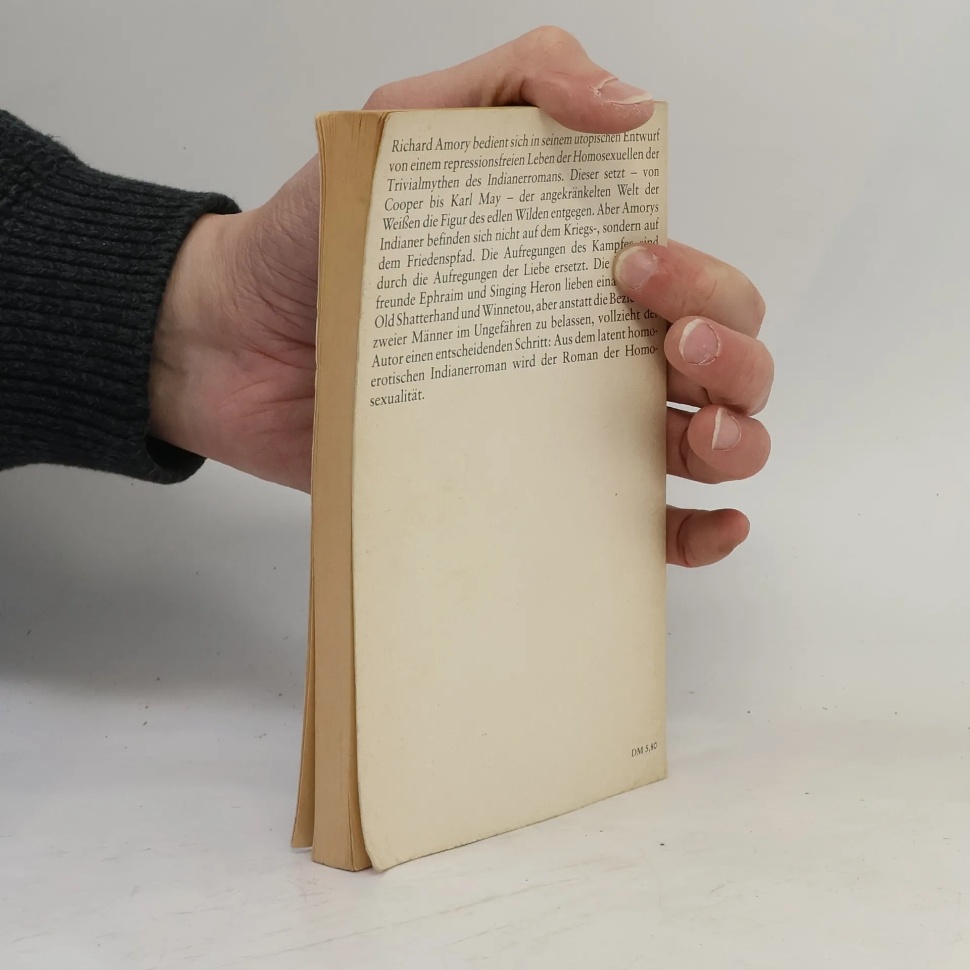 "Richard Amory bedient sich in seinem utopischen Entwurf von einem repressionsfreien Leben der Homosexuellen der Trivialmythen des Indianerromans. Dieser setzt--von Cooper bis Karl May--der angekränkelten Welt der Weißen die Figur des edlen Wilden entgegen. Aber Amorys Indianer befinden sich nicht auf dem Kriegs-, sondern auf dem Friedenspfad. Die Aufregungen des Kampfes sind durch die Aufregungen der Liebe ersetzt. Die Indianerfreunde Ephraim und Singing Heron lieben einander wie Old Shatterhand und Winnetou, aber anstatt die Beziehung zweier Männer im Ungefähren zu belassen, vollzieht der Autor einen entscheidenden Schritt: Aus dem latent homoerotischen Indianerroman wird der Roman der Homosexualität."--Back cover.