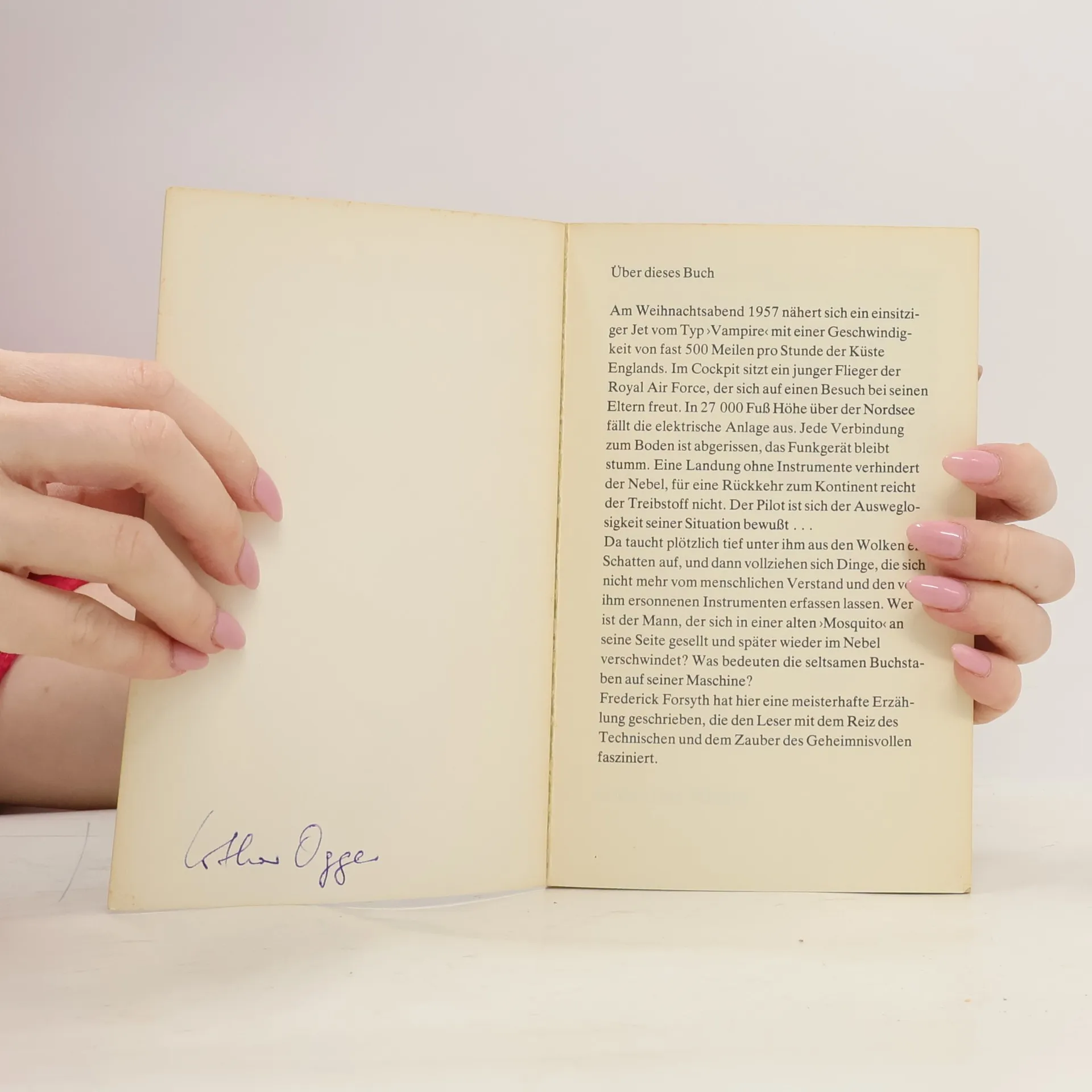 »Ein packendes Hörerlebnis« Hörbuch aktuell Am 24. Dezember 1957 ist ein englischer Pilot auf dem Heimflug nach Norfolk, um mit seiner Familie Weihnachten zu feiern. Doch in 27.000 Fuß Höhe versagen Kompass, Funkgerät und die gesamte Elektronik. Eine Landung ohne Instrumente verhindert der Nebel. Als der Flieger bereits den Tod vor Augen hat, taucht neben ihm in den Wolken ein uralter Jagdbomber auf. Der geheimnisvolle Lotse geleitet den jungen Engländer sicher zum nächsten Flugplatz, wo er unversehrt notlanden kann. Erst dort wird ihm bewusst, welch rätselhaften Umständen er seine dramatische Rettung verdankt …