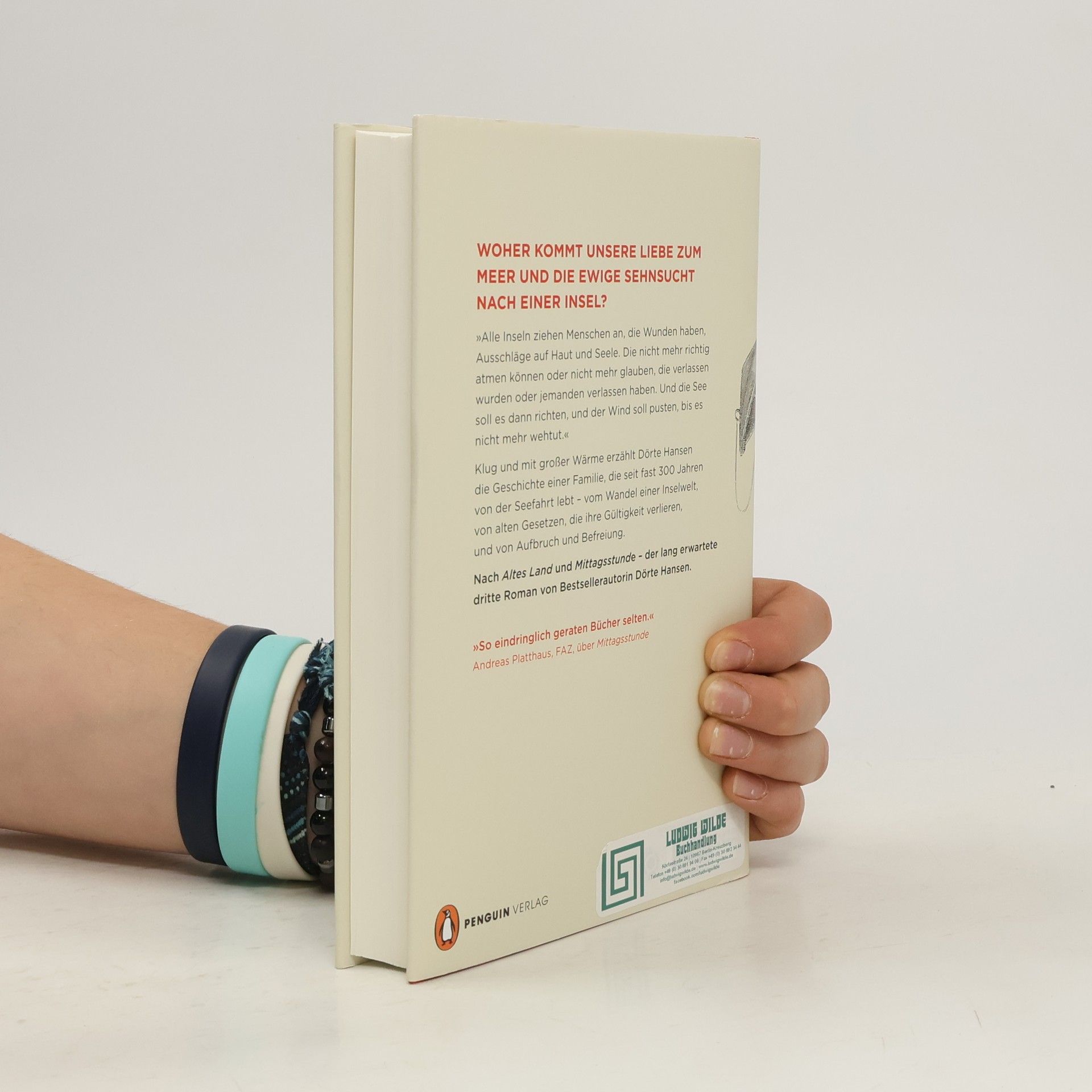 Der dritte Roman von Bestsellerautorin Dörte Hansen. Woher kommt unsere Liebe zum Meer und die ewige Sehnsucht nach einer Insel? Die Fähre braucht vom Festland eine Stunde auf die kleine Nordseeinsel, manchmal länger, je nach Wellengang. Hier lebt in einem der zwei Dörfer seit fast 300 Jahren die Familie Sander. Drei Kinder hat Hanne großgezogen, ihr Mann hat die Familie und die Seefahrt aufgegeben. Nun hat ihr Ältester sein Kapitänspatent verloren, ist gequält von Ahnungen und Flutstatistiken und wartet auf den schwersten aller Stürme. Tochter Eske, die im Seniorenheim Seeleute und Witwen pflegt, fürchtet die Touristenströme mehr als das Wasser, weil mit ihnen die Inselkultur längst zur Folklore verkommt. Nur Henrik, der Jüngste, ist mit sich im Reinen. Er ist der erste Mann in der Familie, den es nie auf ein Schiff gezogen hat, nur immer an den Strand, wo er Treibgut sammelt. Im Laufe eines Jahres verändert sich das Leben der Familie Sander von Grund auf, erst kaum spürbar, dann mit voller Wucht.Klug und mit großer Wärme erzählt Dörte Hansen vom Wandel einer Inselwelt, von alten Gesetzen, die ihre Gültigkeit verlieren, und von Aufbruch und Befreiung.