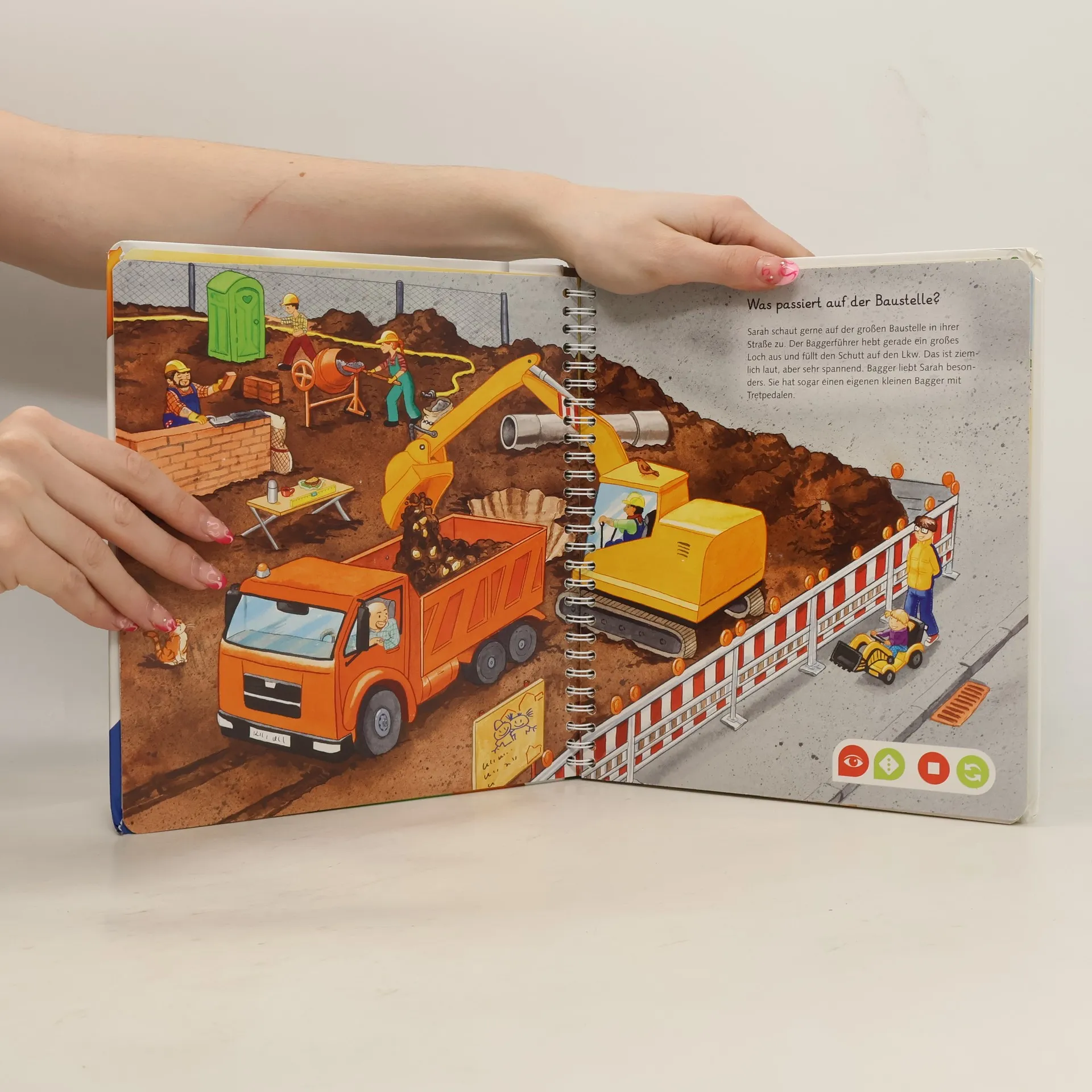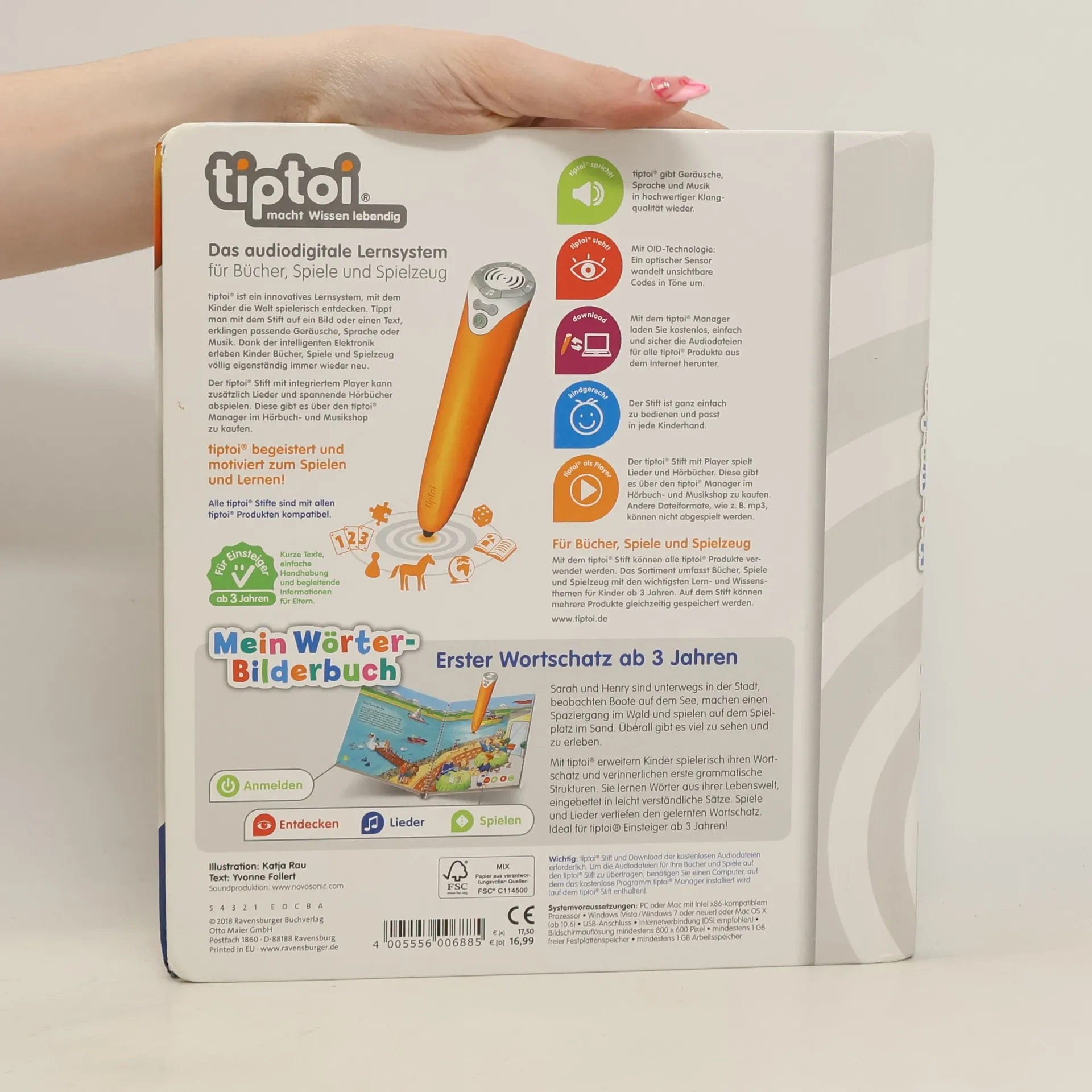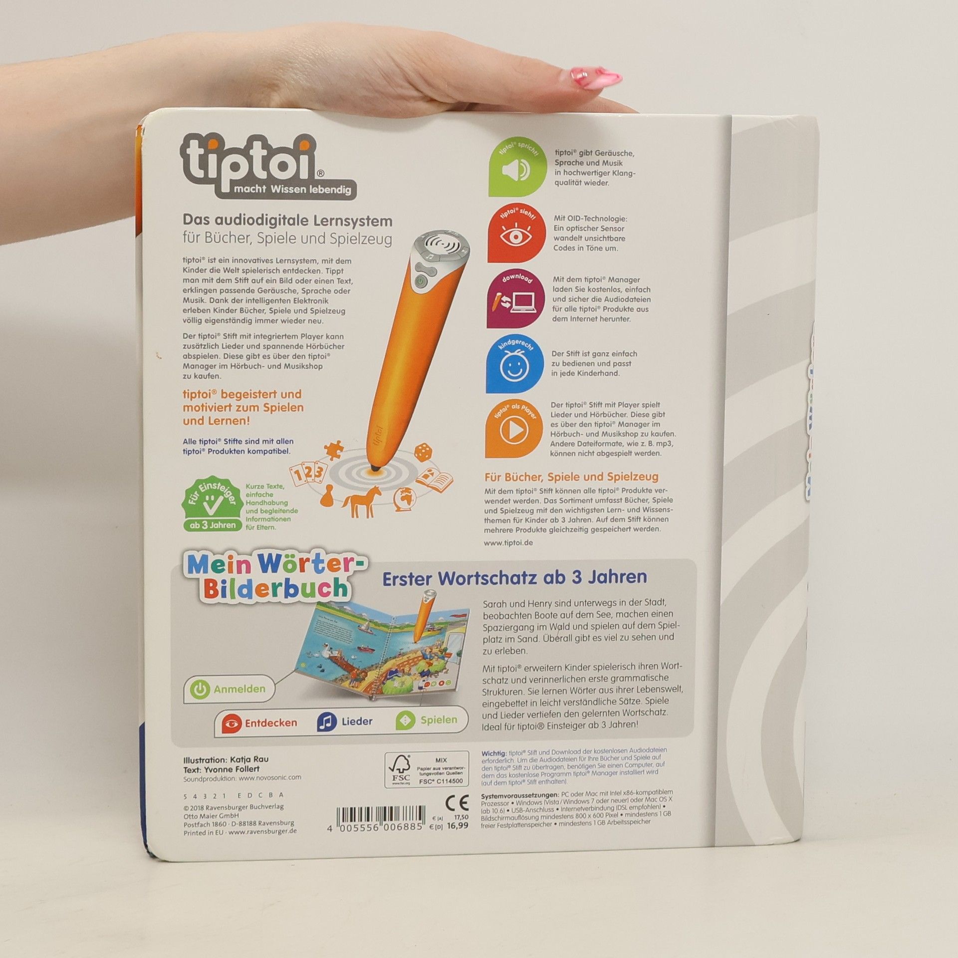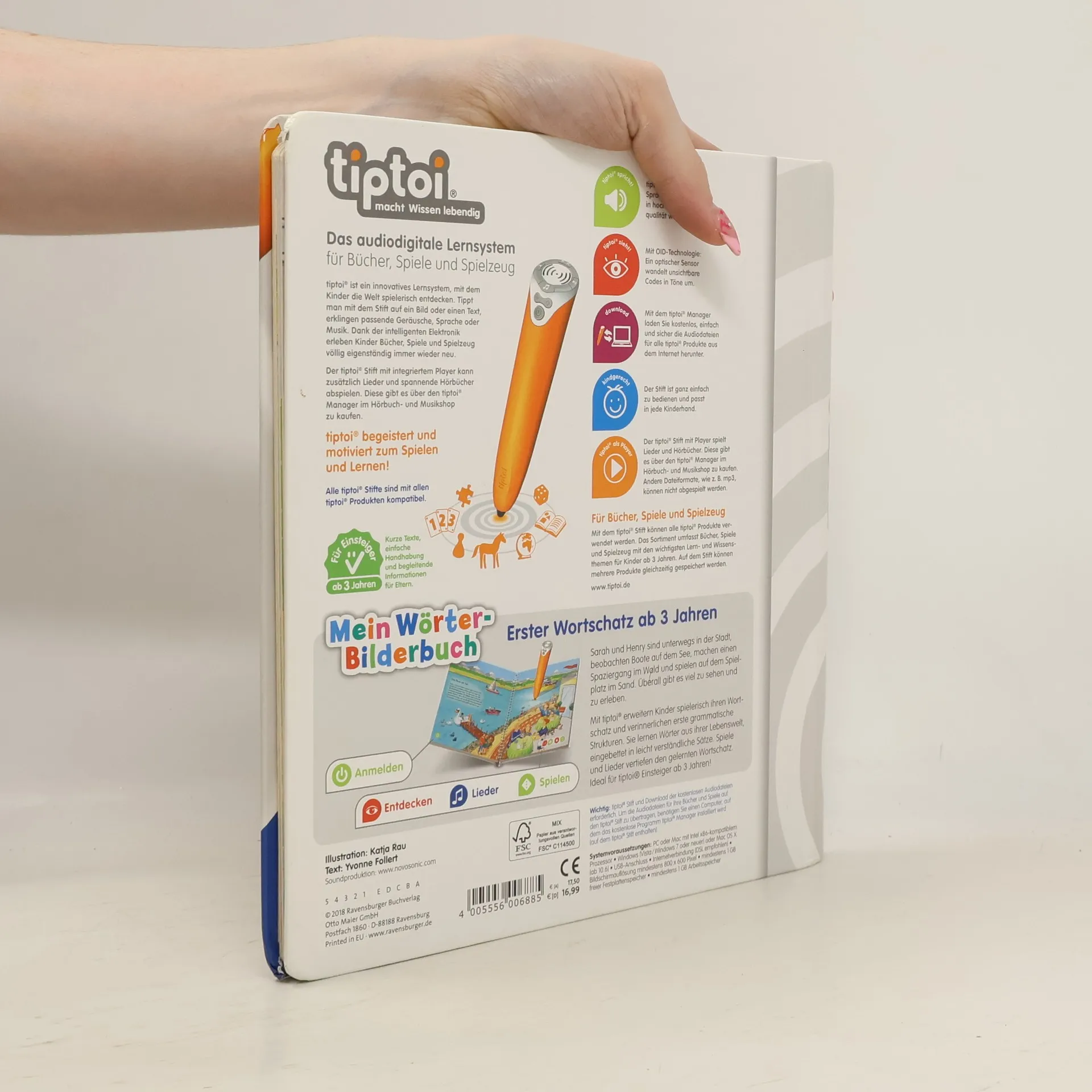 Wörterlernen leicht gemacht: Unterwegs gibt es viel zu sehen! Gemeinsam mit den Kindern Sarah und Henry gehen kleine Entdecker auf eine spannende Erkundungstour. Sie radeln durch die Stadt, beobachten Boote auf dem See, machen einen Spaziergang und buddeln auf dem Spielplatz im Sand. Kinder erweitern spielerisch ihren Wortschatz und verinnerlichen erste grammatische Strukturen. Spiele und Lieder vertiefen den gelernten Wortschatz. Mit der Reihe tiptoi Mein Wörter-Bilderbuch bauen Kinder spielerisch ihren Wortschatz auf und erweitern diesen selbstständig. Die kurzen, leicht verständlichen Texte eignen sich ideal für Kinder ab 3 Jahren. Jedes Buch zeigt den Kindern bekannte Szenen und Situationen und vermittelt viele vertraute Begriffe aus dem direkten Umfeld und der Erfahrungswelt der Kinder. Überall gibt es spannende Sätze, zahlreiche Dialoge und lustige Geräusche zu entdecken. Dabei sind die einzelnen Begriffe in ganze Sätze eingebunden, um den Kindern erste grammatische Strukturen zu vermitteln. In jedem Buch wird das Gelernte durch kindgerechte und abwechslungsreiche Spiele mit Lösungskontrolle abgefragt und vertieft. Neukomponierte Lieder und liebevolle Geschichten motivieren zum spielerischen Wörterlernen. tiptoi-Stift nicht enthalten. Muss separat erworben werden.