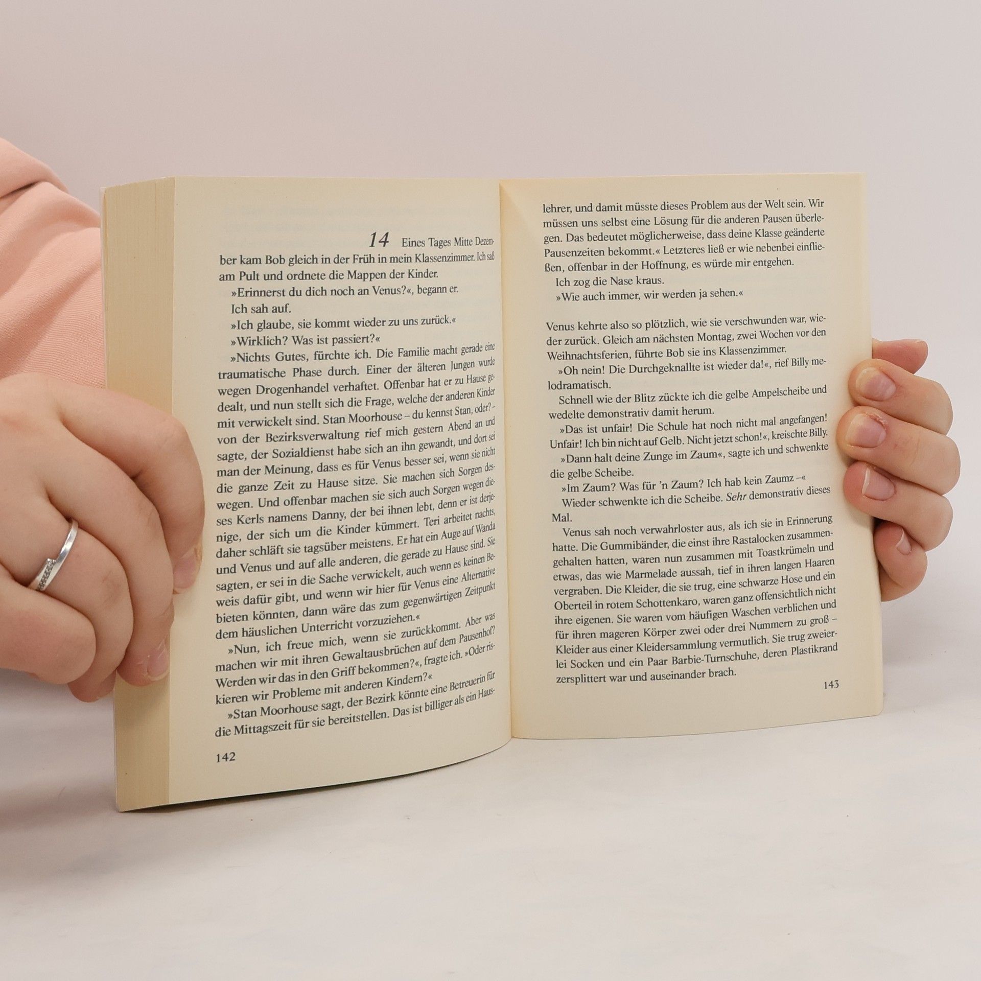 Das kleine Mädchen hatte sich ganz und gar von seiner Umwelt abgekapselt und in seine eigene Welt zurückgezogen. Mit den bewährten 'Waffen' Geduld und Liebe gelingt es der Kindertherapeutin, zu ergründen, warum Venus am liebsten auf der Schulhofmauer sitzt und beharrlich schweigt. Torey Hayden beschreibt, wie sie die traumatisierte Siebenjährige Schritt für Schritt aus der Vergangenheit in eine hoffnungsvolle Zukunft begleitet.