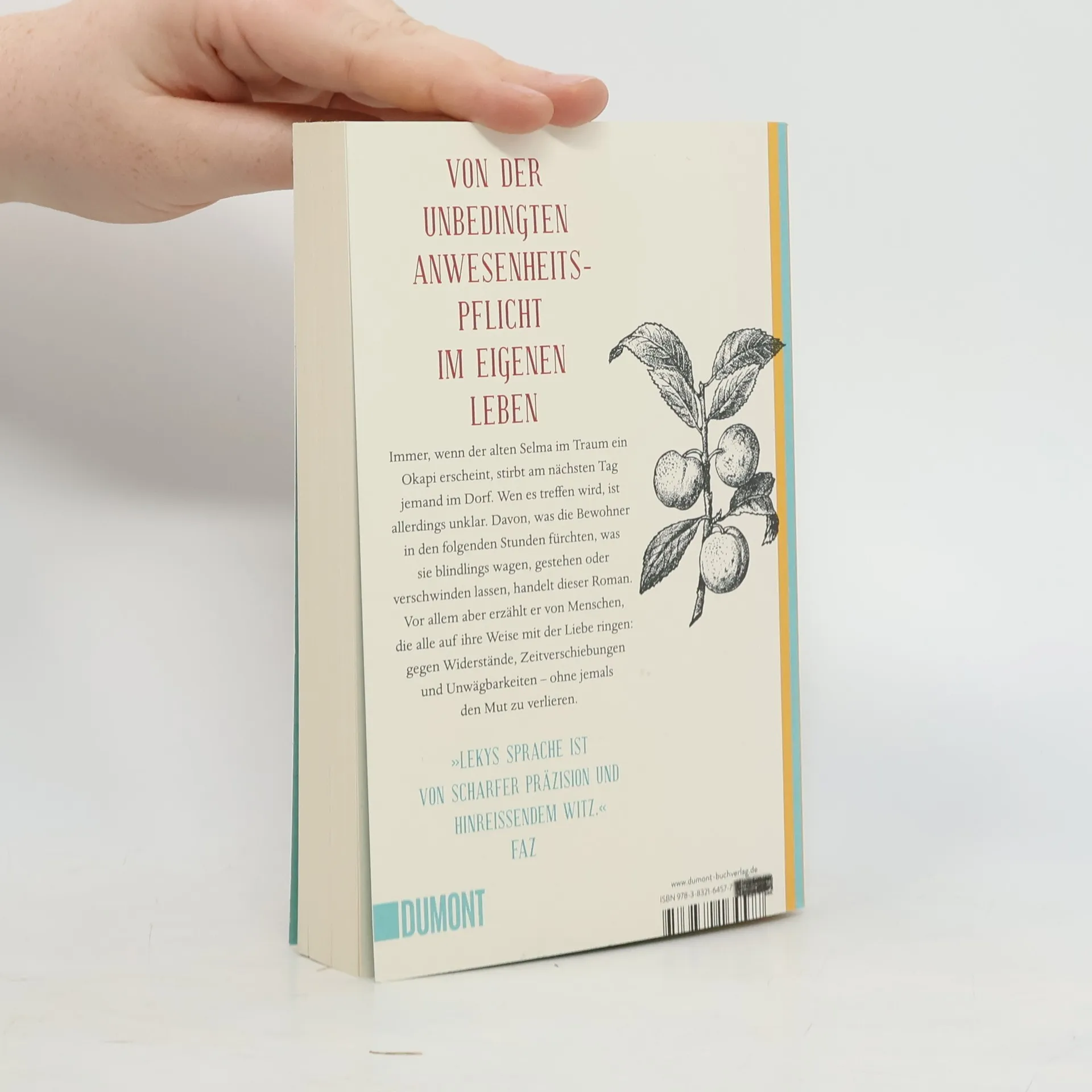 Irgendwo im Westerwald - Mariana Lekys weiser und warmherziger Bestsellerroman über ein Dorf in der Provinz und seine skurrilen Bewohner Selma, eine alte Westerwälderin, kann den Tod voraussehen. Immer, wenn ihr im Traum ein Okapi erscheint, stirbt am nächsten Tag jemand im Dorf. Unklar ist allerdings, wen es treffen wird. Davon, was die Bewohner in den folgenden Stunden fürchten, was sie blindlings wagen, gestehen oder verschwinden lassen, erzählt Mariana Leky in ihrem Roman. ›Was man von hier aus sehen kann‹ ist das Porträt eines Dorfes, in dem alles auf wundersame Weise zusammenhängt. Aber es ist vor allem ein Buch über die Liebe unter schwierigen Vorzeichen, Liebe, die scheinbar immer die ungünstigsten Bedingungen wählt. Für Luise zum Beispiel, Selmas Enkelin, gilt es viele tausend Kilometer zu überbrücken. Denn der Mann, den sie liebt, ist zum Buddhismus konvertiert und lebt in einem Kloster in Japan … Die Verfilmung von Mariana Lekys Roman ‚Was man von hier aus sehen kann‘ ist seit dem 29. Dezember 2022 in den deutschen und österreichischen Kinos zu sehen.