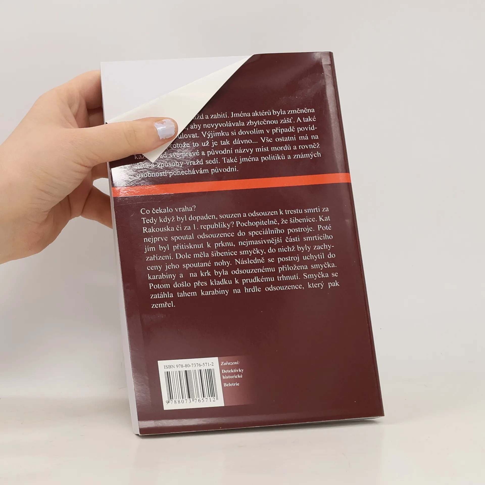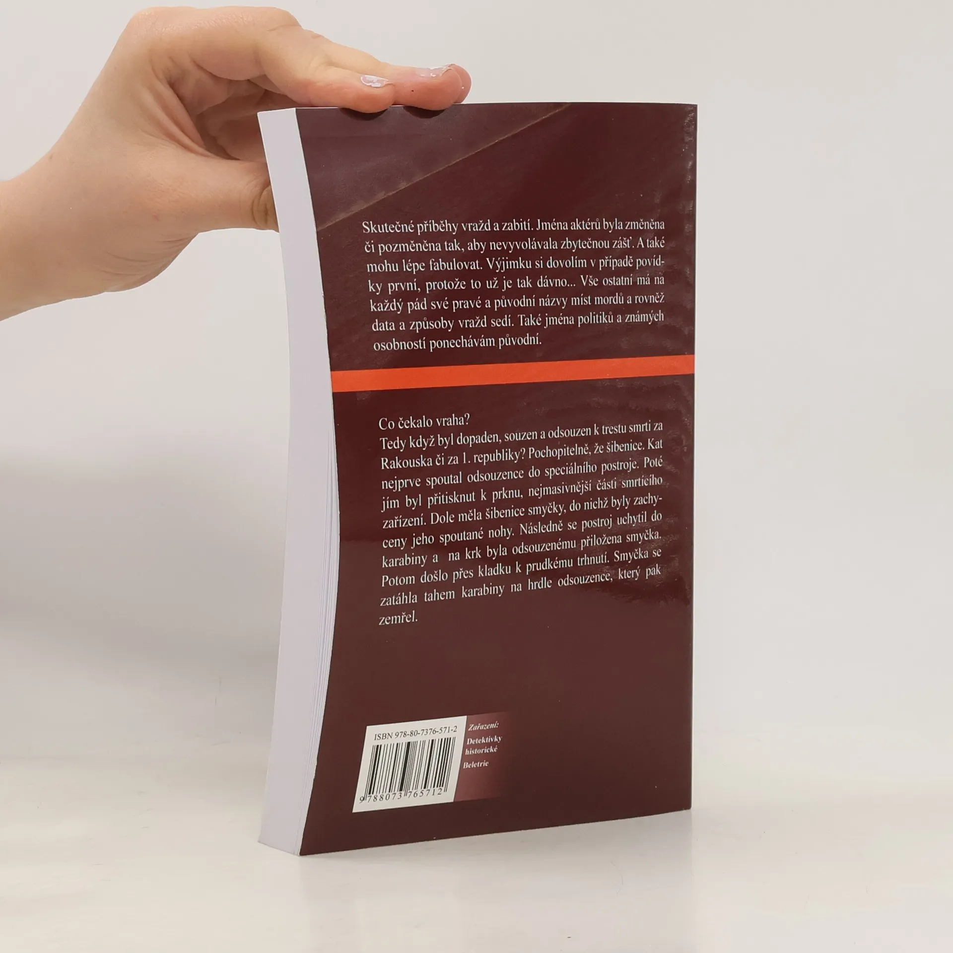 Z C & K Rakouska a z I. republiky. Skutečné příběhy vražd a zabití z doby mocnářství a první republiky. Jména aktérů byla změněna či pozměněna tak, aby nevyvolávala zbytečnou zášť. A také autor mohl lépe fabulovat. Výjimku si dovolil pouze v případě povídky první, protože to už je tak dávno... Vše ostatní v povídkách je reálné (původní názvy míst mordů, rovněž data a způsoby vražd). Také jména politiků a známých osobností byla ponechána. Co čekalo vraha? Tedy když byl dopaden, souzen a odsouzen k trestu smrti za Rakouska či za 1. republiky? Pochopitelně, že šibenice. Kat nejprve spoutal odsouzence do speciálního postroje. Poté jím byl přitisknut k prknu, nejmasivnější části smrtícího zařízení. Dole měla šibenice smyčky, do nichž byly zachyceny jeho spoutané nohy. Následně se postroj uchytil do karabiny a na krk byla odsouzenému přiložena smyčka. Potom došlo přes kladku k prudkému trhu. Smyčka se zatáhla tahem karabiny na hrdle odsouzence, který pak zemřel.