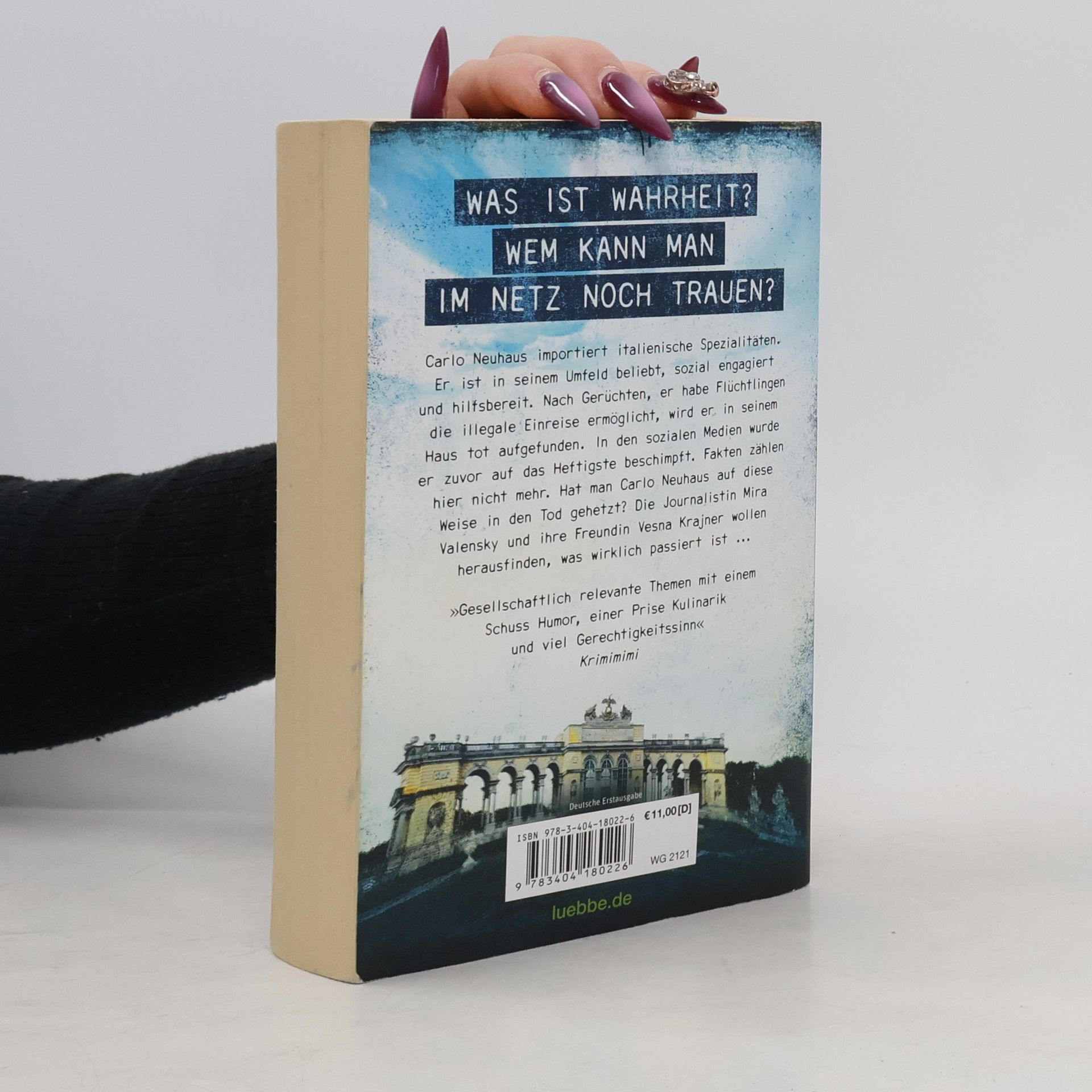 Carlo Neuhaus importiert italienische Spezialitäten. Er ist in seinem Umfeld beliebt, sozial engagiert und hilfsbereit. Nach Gerüchten, er habe Flüchtlingen die illegale Einreise ermöglicht, wird er in seinem Haus tot aufgefunden. In den sozialen Medien wurde er zuvor auf das Heftigste beschimpft. Fakten zählen hier nichts mehr. Hat man Carlo Neuhaus auf diese Weise in den Tod gehetzt? Die Jornalistin Mira Valensky und ihre Freundin Vesna Krajner wollen herausfinden, was wirklich passiert ist.